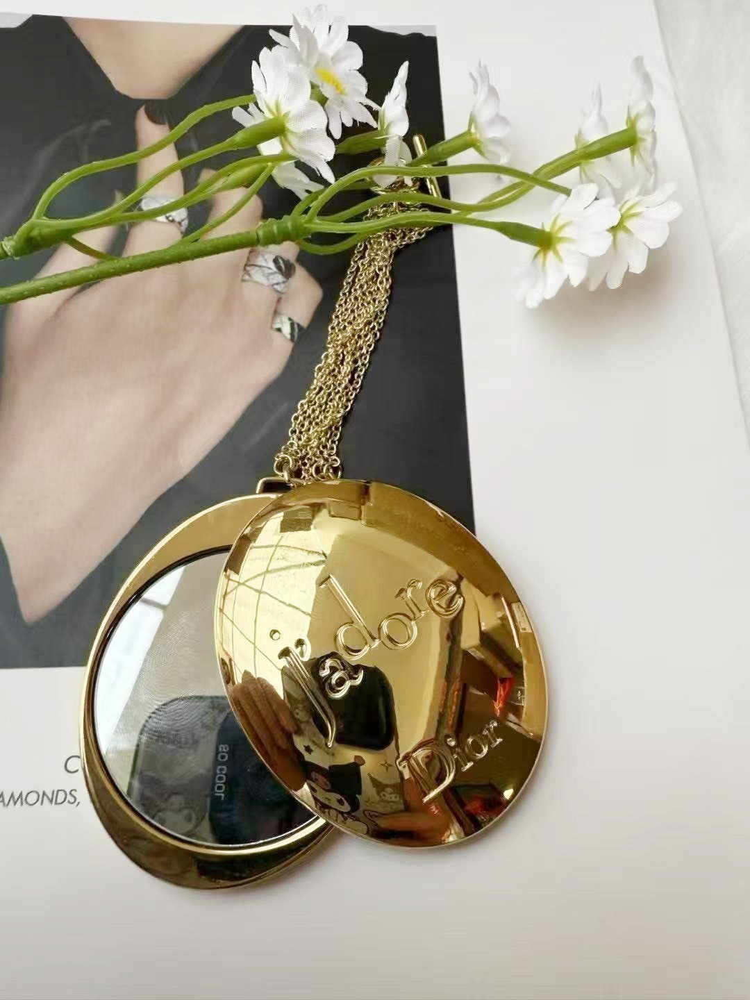 как выглядит Dior Beauty Cosmetic Makeup Gold Pocket Mirror with New Box фото