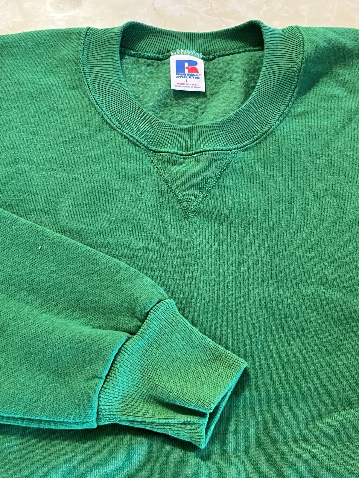 как выглядит NOS Vtg Russell Athletic Crewneck Sweatshirt Mens L Green BLANK USA 1990s фото