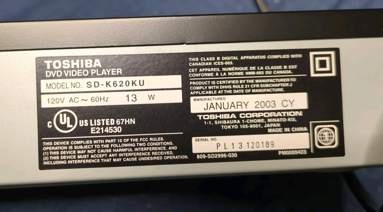 Модель: Toshiba SD-K620