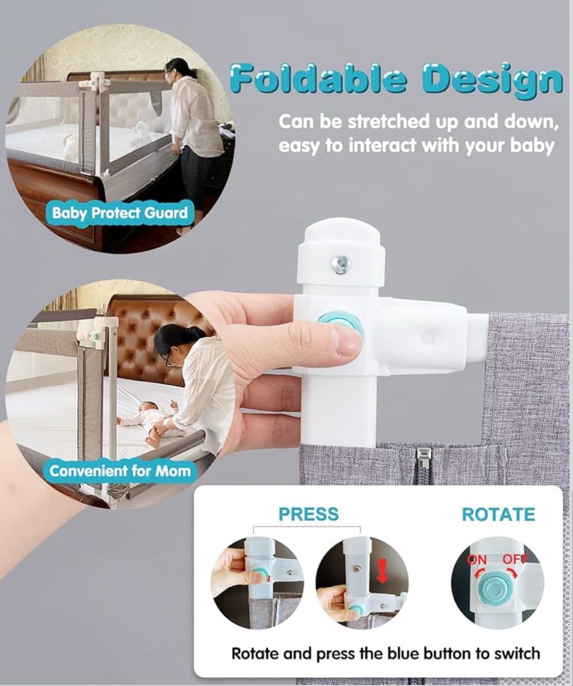MBQMBSS 77 Extra Long Toddler Baby Bed Rail Guard Adjustable for King/Queen/Twi