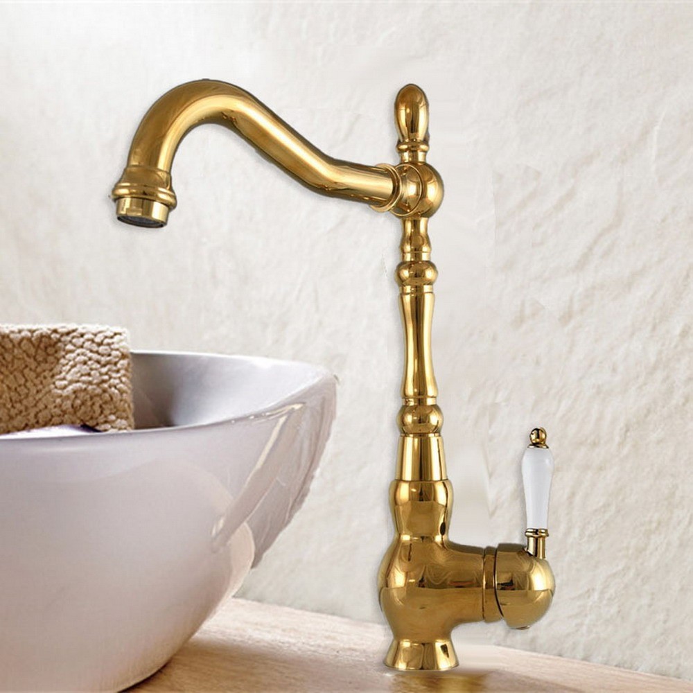 Gold Color Brass Bathroom Kitchen Sink Swivel Spout Faucet Mixer Tap fgf068