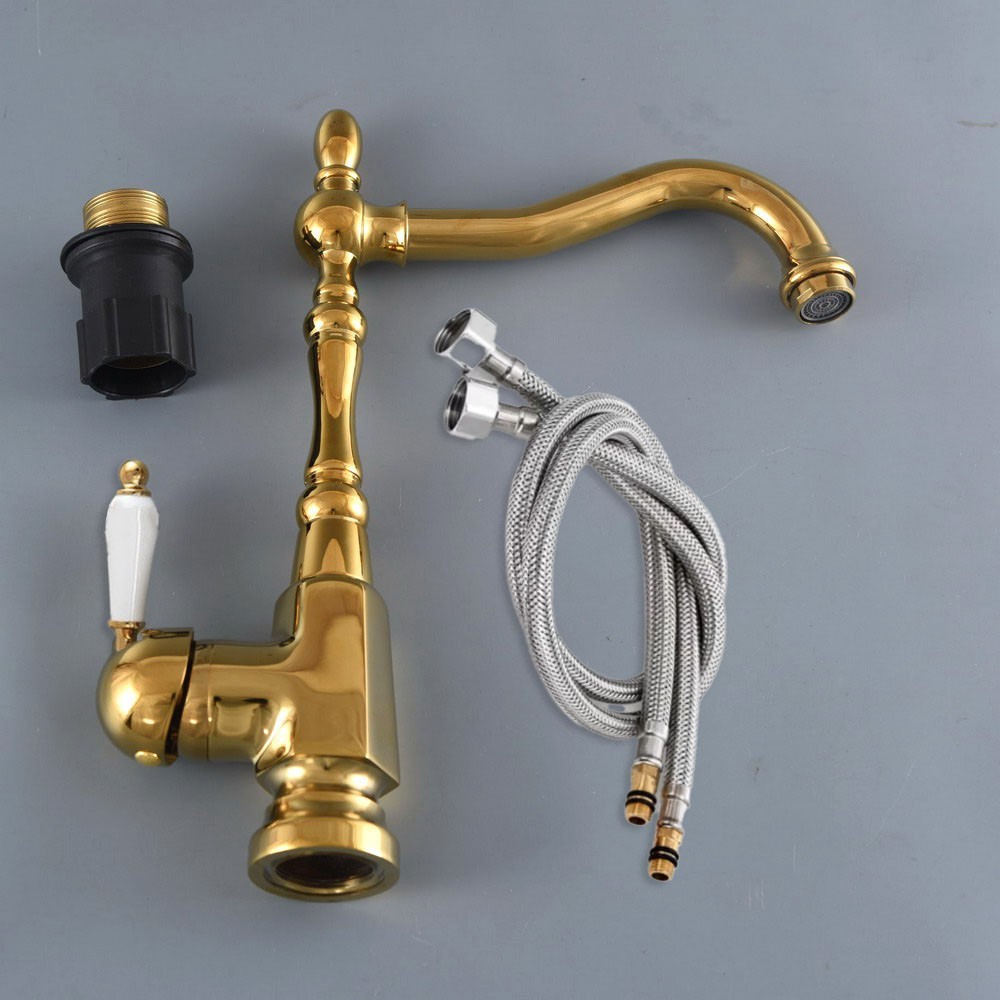 Gold Color Brass Bathroom Kitchen Sink Swivel Spout Faucet Mixer Tap fgf070
