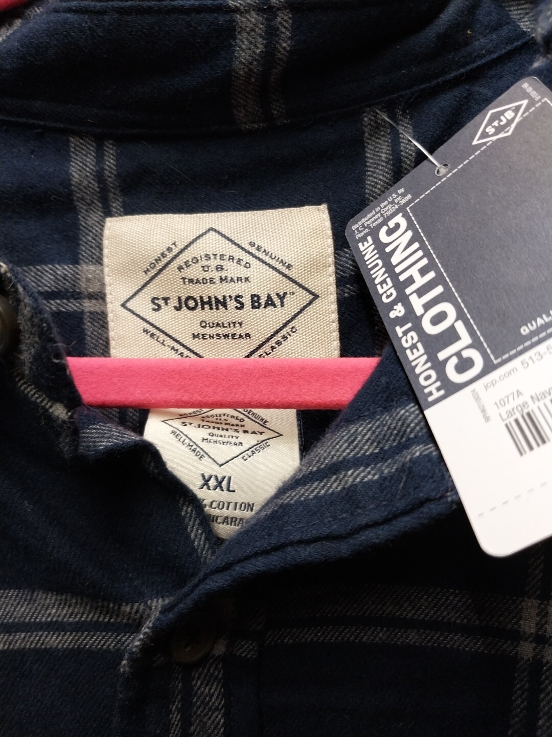 как выглядит St Johns Bay Mens Flannel Shirt-Sz XXL-Dk Blue Plaid-Super Soft-NEW фото