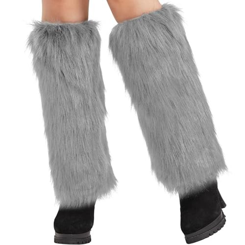 Womens Fur Leg Warmer Winter Furry Long Boot Cuffs Cover TTW0034 Gray