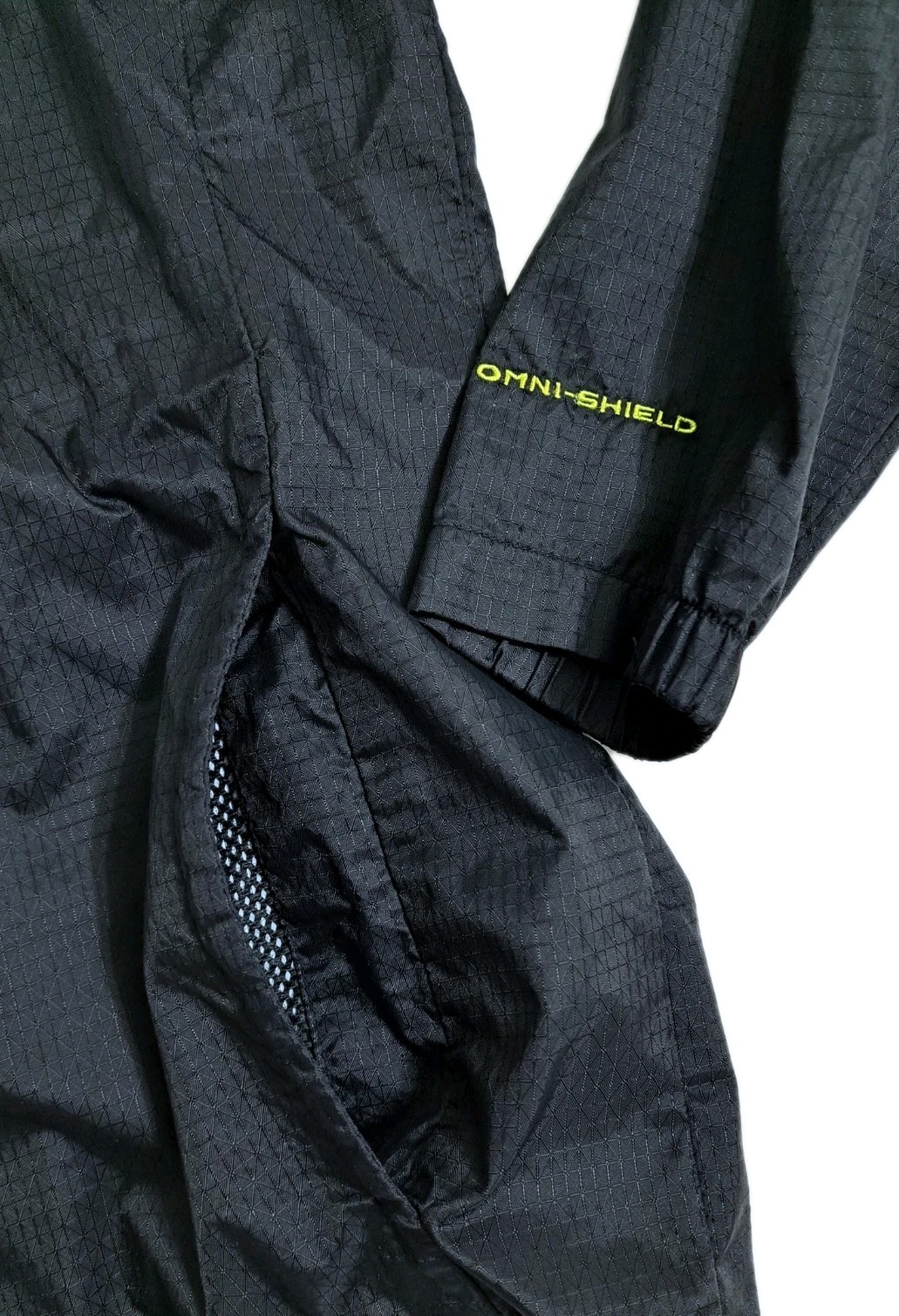 Columbia Boys Medium 10/12 Hooded Zip Windbreaker Rain Jacket Black Omnishield