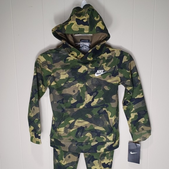 Nike Green Camouflage Fleece Sweat Jogger Hoodie Set Kids 5-6 Years