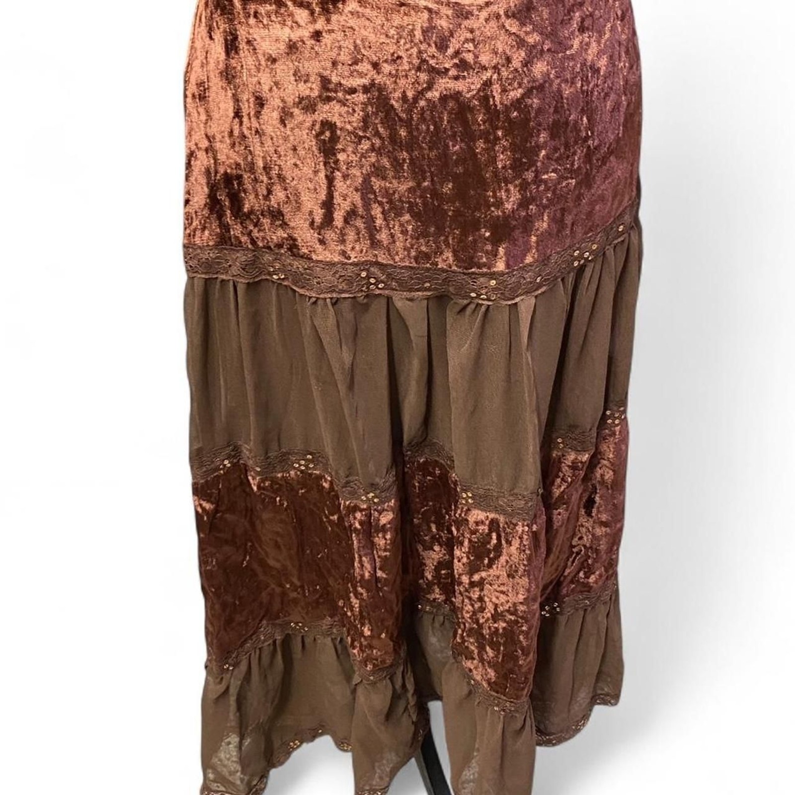 как выглядит Y2K Whimsigoth Fairy Boho Feminine Festival Velvet and Embroidered Maxi Skirt фото