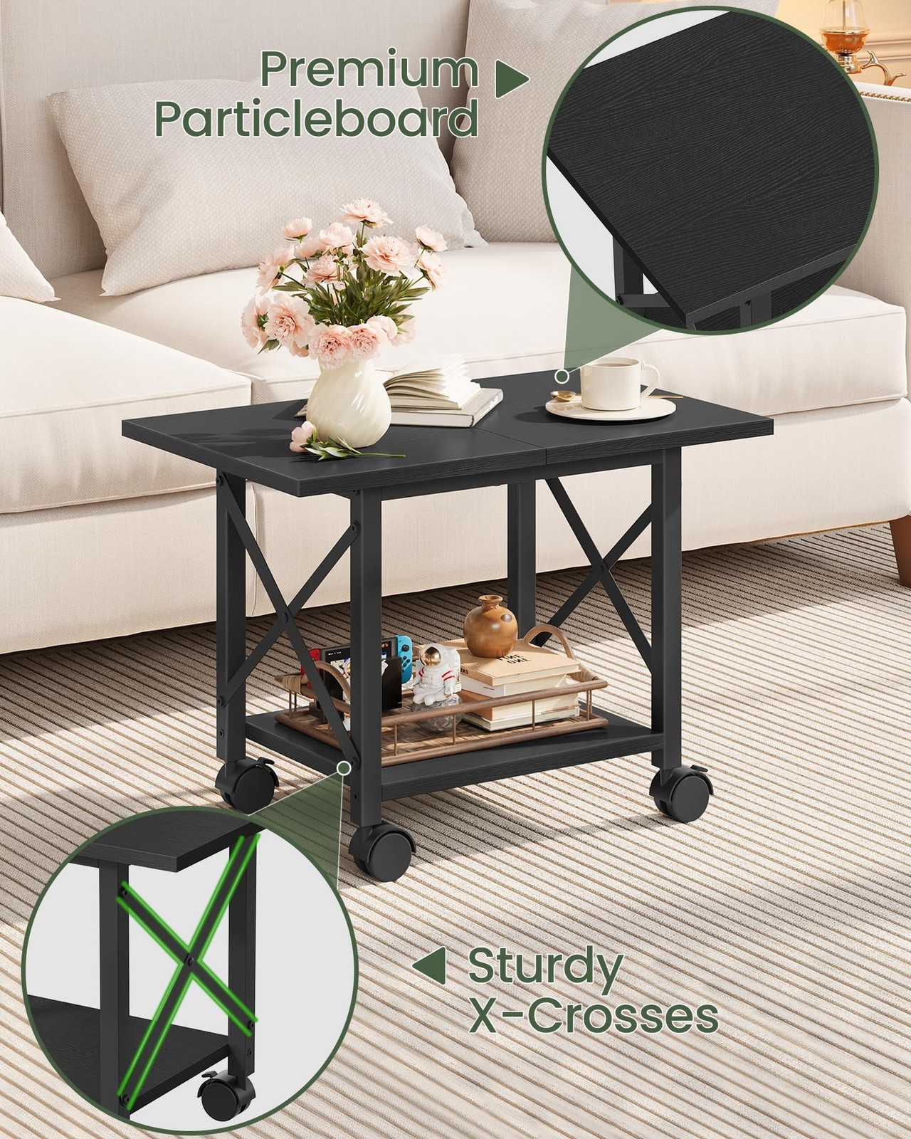 23.6 Under Desk Printer Stand, 2-Tier Printer Table with Wheels Adjustable F...