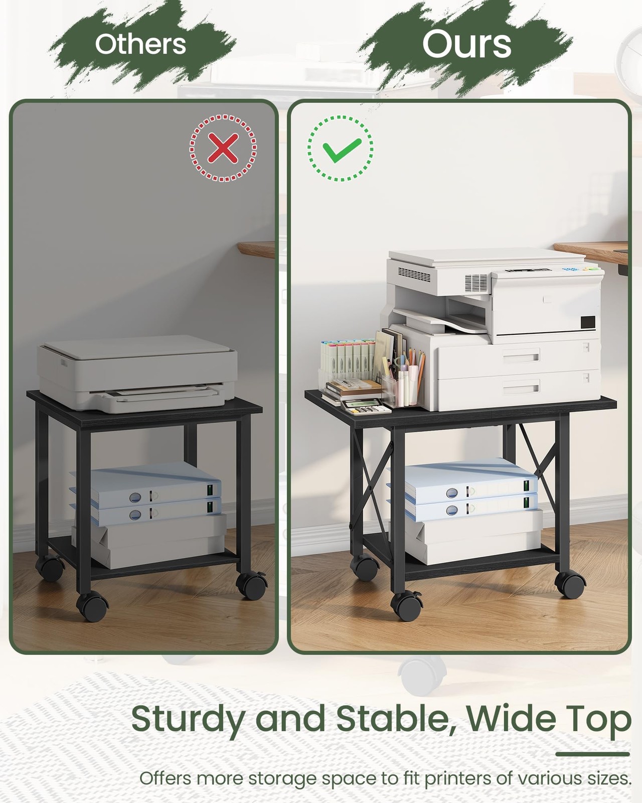 как выглядит 23.6" Under Desk Printer Stand, 2-Tier Printer Table with Wheels Adjustable F... фото