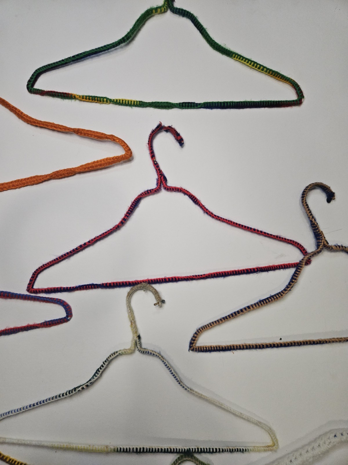 как выглядит Vintage Crocheted Wire Hangers Lot 18 of Colorful Boho Cottagecore Granny фото