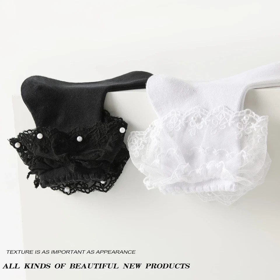 Lace Ruffle Frilly Ankle Socks for Women Pearl Lace Socks Fashion Footwear