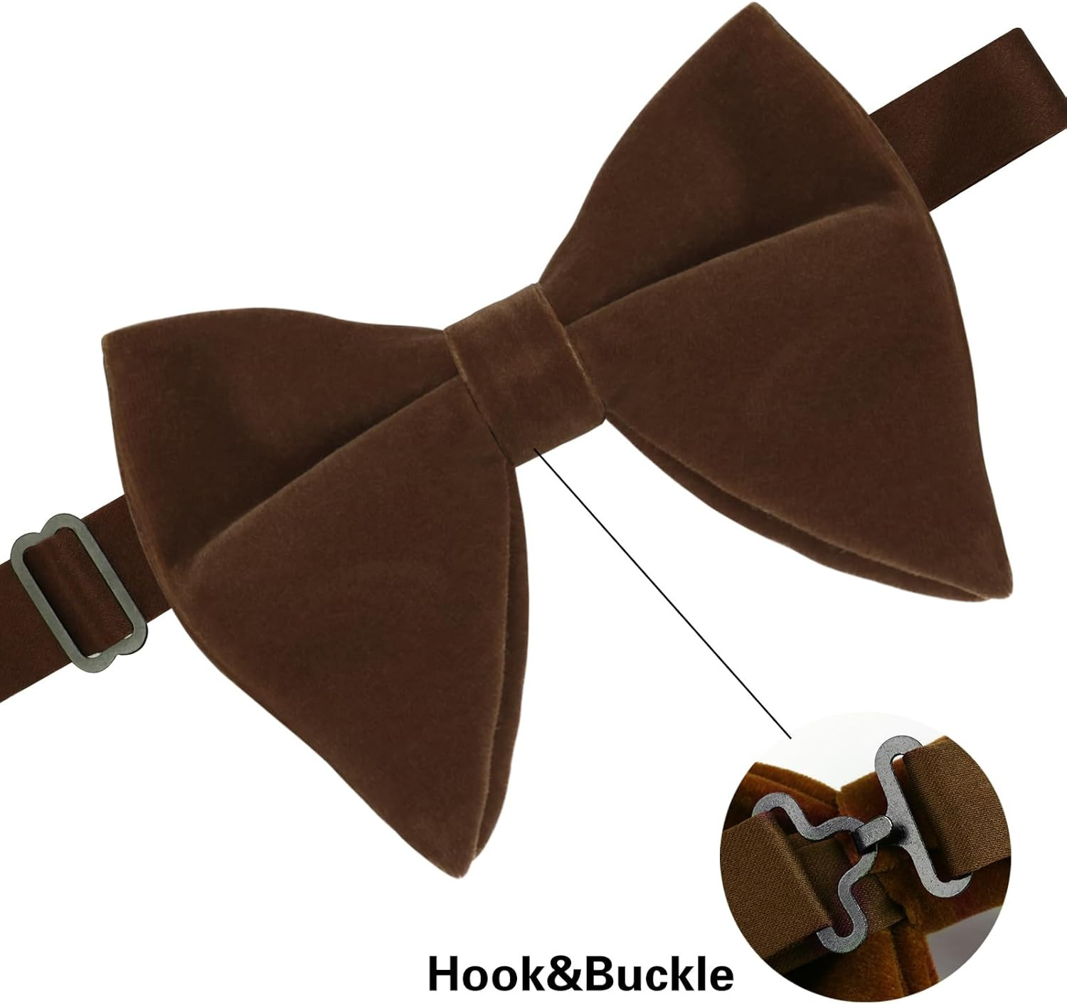 Velvet Pre-tied Adjustable Bow Tie for Men Oversize Formal Solid Tuxedo Bowtie