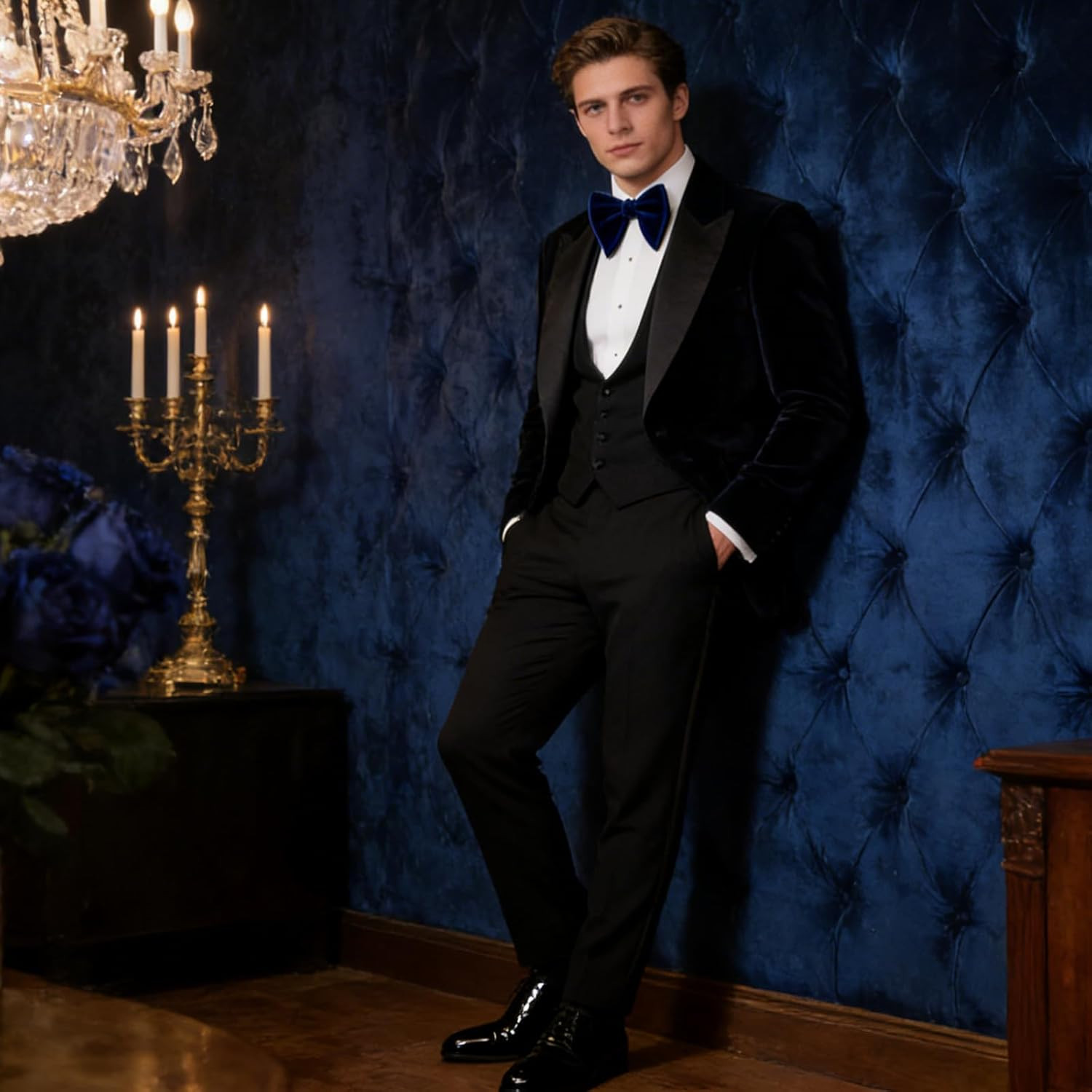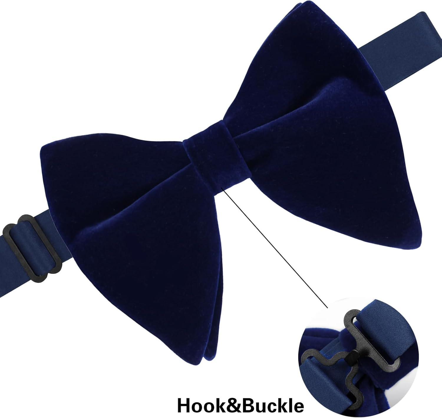 Velvet Pre-tied Adjustable Bow Tie for Men Oversize Formal Solid Tuxedo Bowtie
