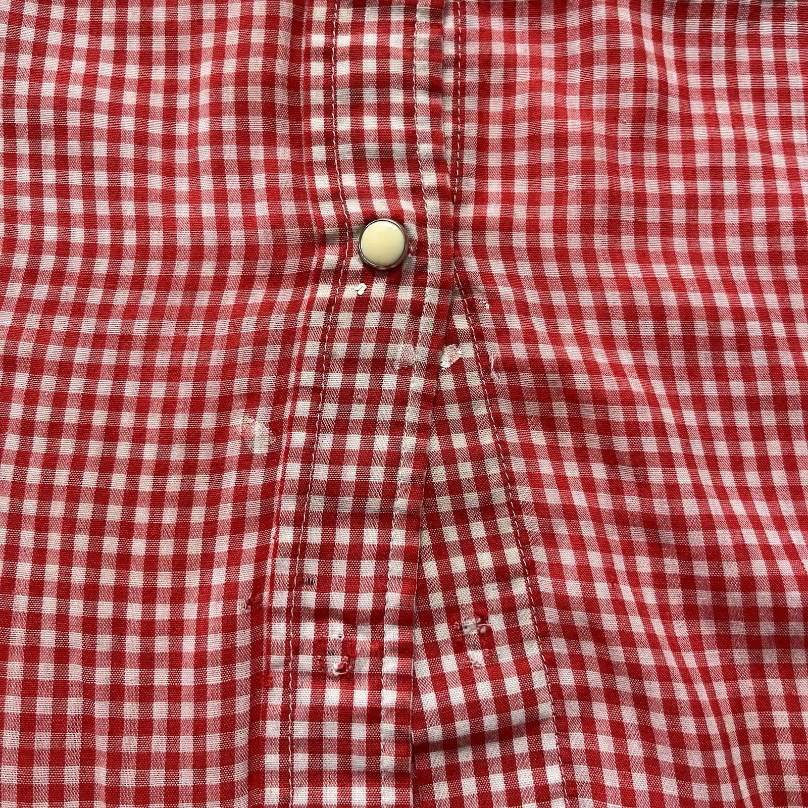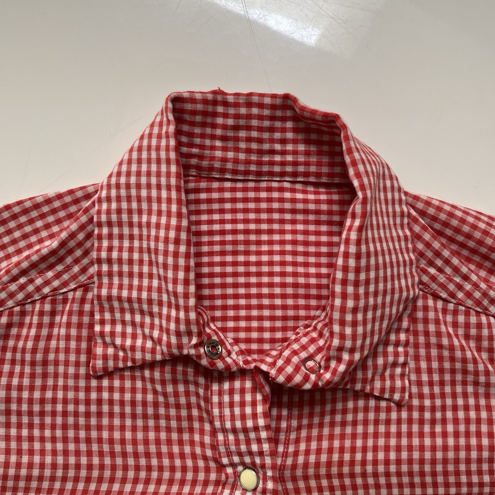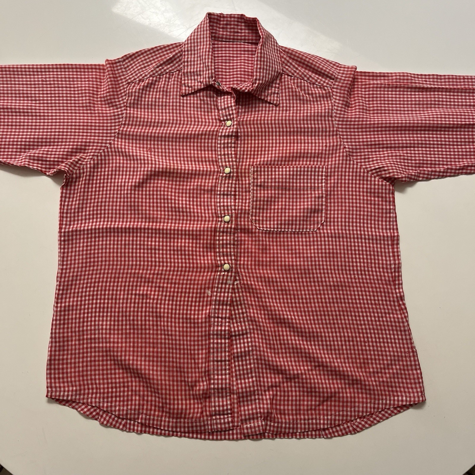 как выглядит Western Shirt VTG 60s 70s Solid and Red 2 Tone Gingham Pearl Snap Shirt Sz M/L фото