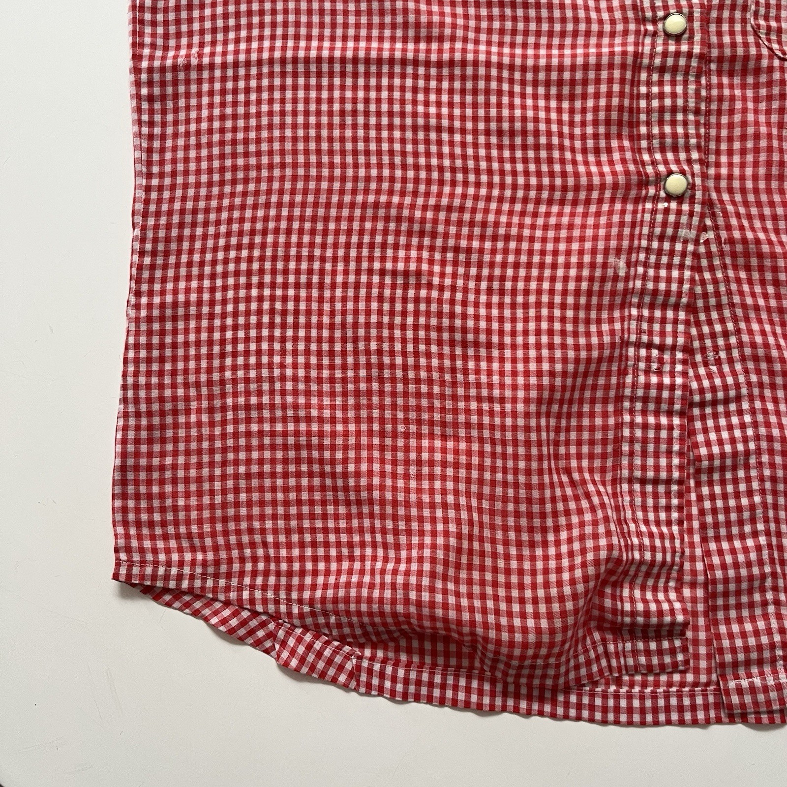 Western Shirt VTG 60s 70s Solid and Red 2 Tone Gingham Pearl Snap Shirt Sz M/L