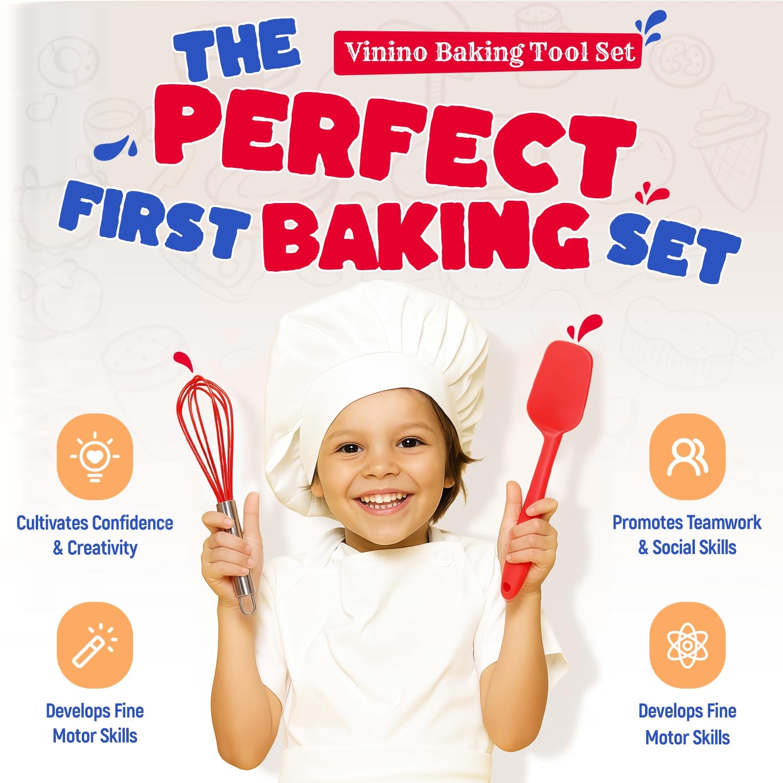 11-Piece Kids Baking Cooking Set Real Baking Utensils with Cookbooks for Ch...