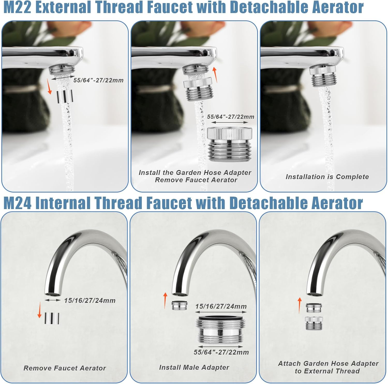 Faucet Adapter Kit, 3/4 Inch Garden Hose to 1/2 Sink Faucet Adapter, Polished Ch