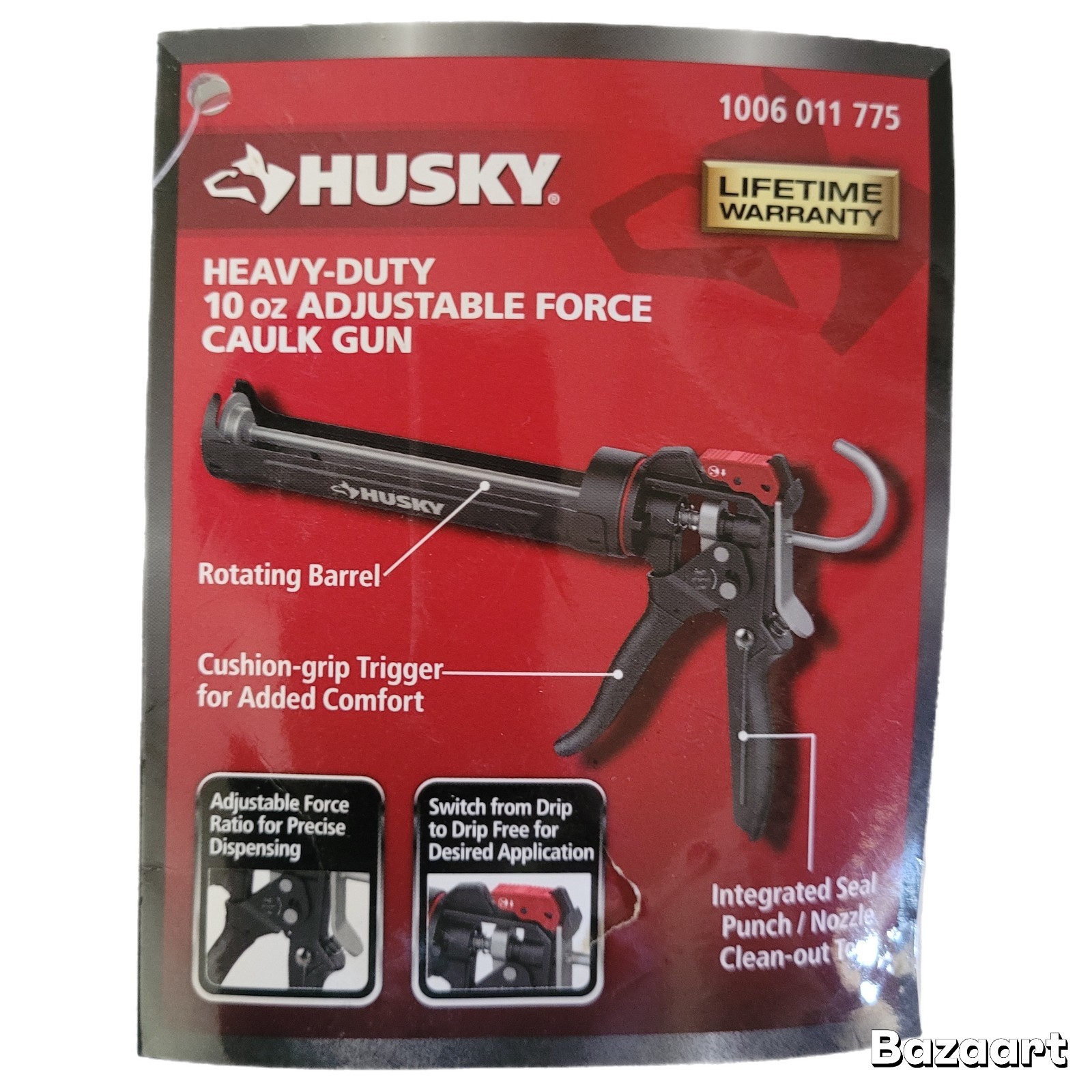 Husky 1006011775 Adjustable Force Caulk Gun Heavy-Duty High Leverage - 10 Oz
