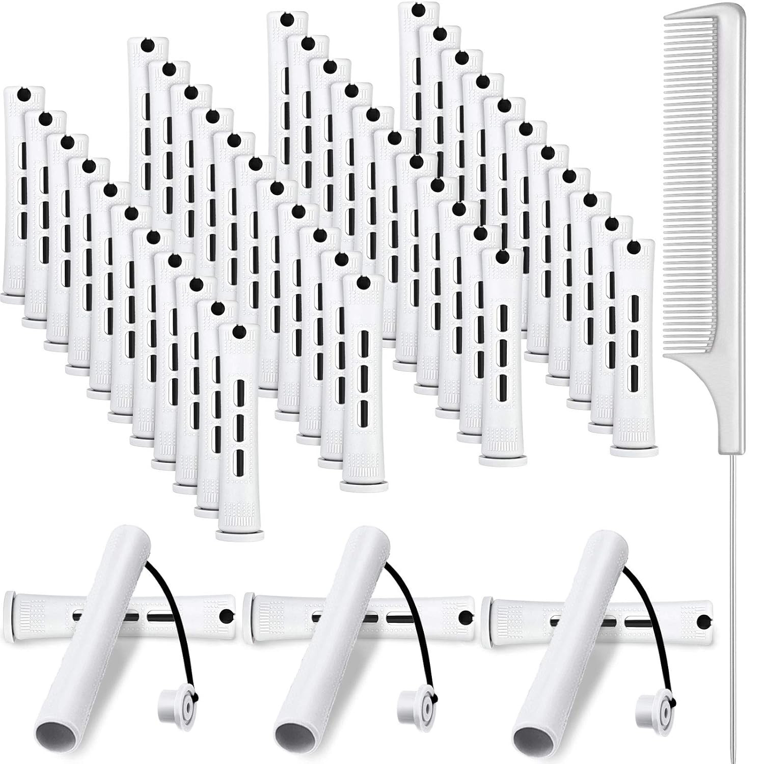 как выглядит 48 Pieces Hair Perm Rods Short Cold Wave Rods Plastic Perming Irons Hair Curling фото