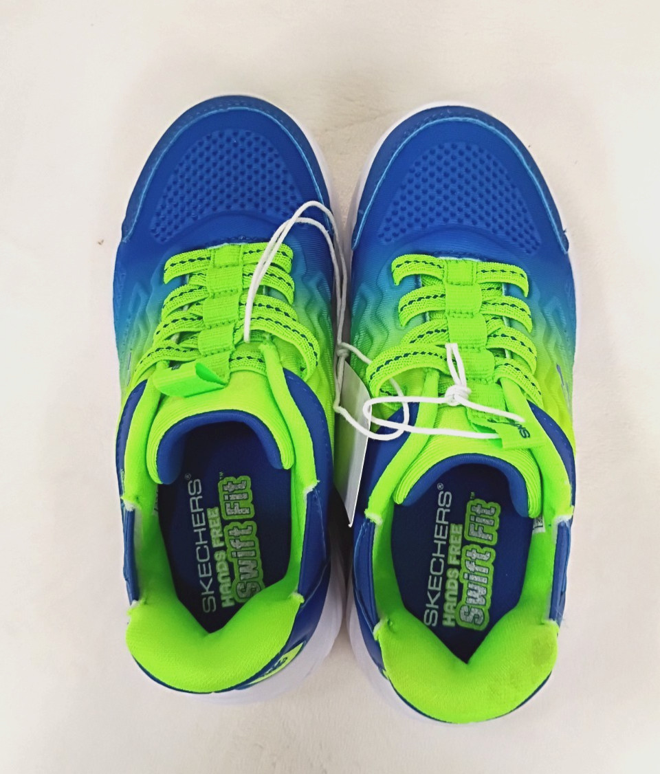 Skechers Hands Free Swift Fit Shoes Kids Size 11 Sneakers Green Blue Colors NIB
