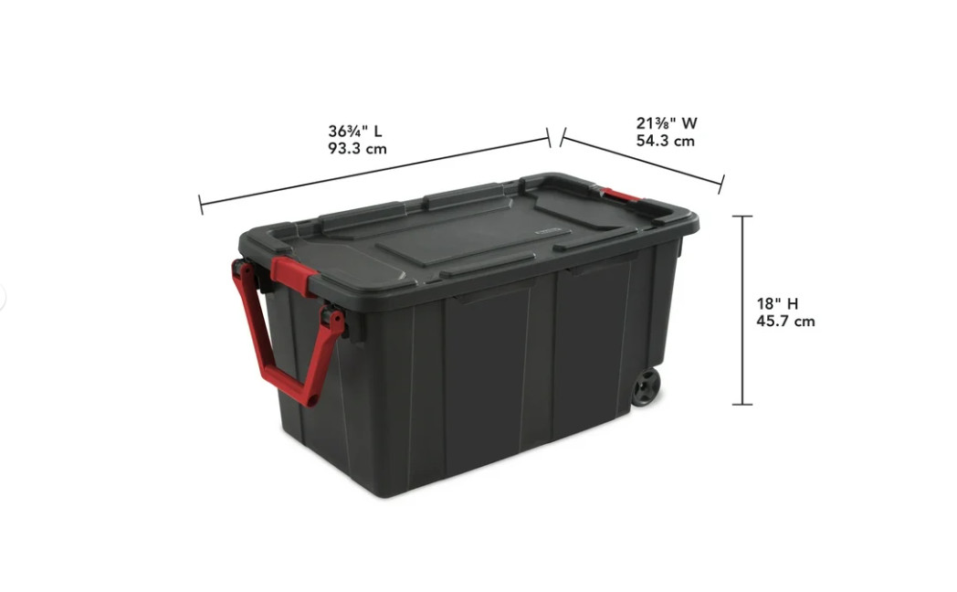 как выглядит Sterilite Extra Large Storage Bin, 40 Gallon Wheeled Plastic Storage Container w фото
