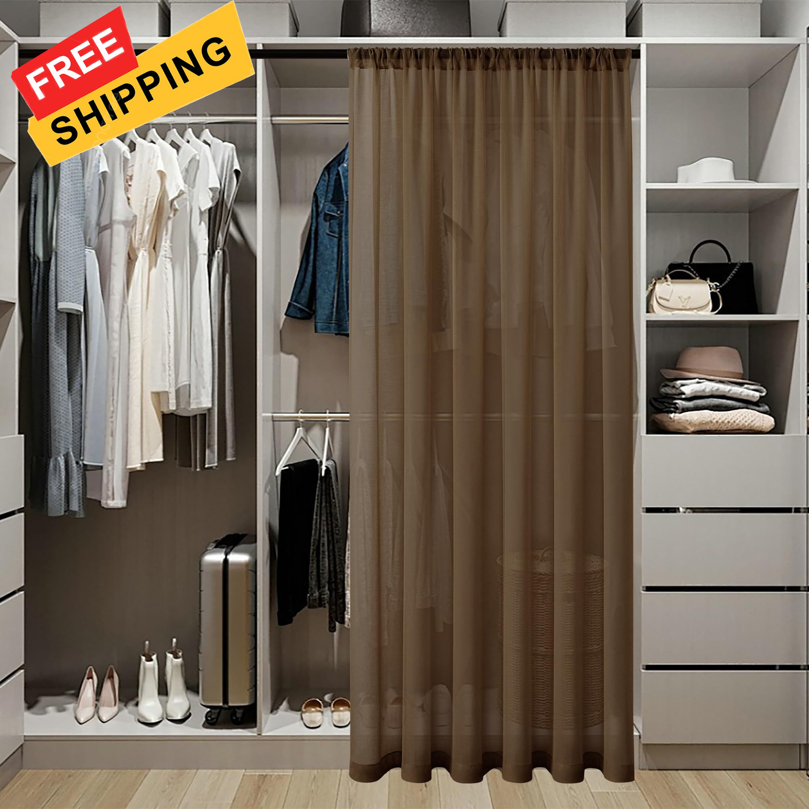 Tollpiz Sheer Door Curtains Closet Linen 25W x 72L Pack of 1 , Brown
