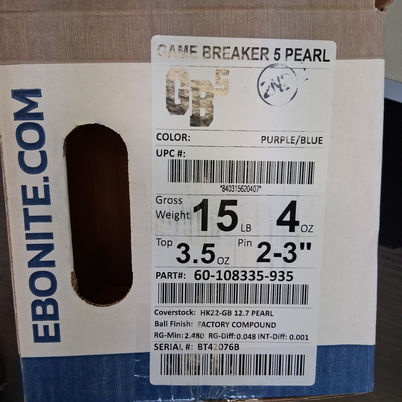 Ebonite Game Breaker 5 Pearl BOWLING ball 15 lb. NEW IN BOX 076