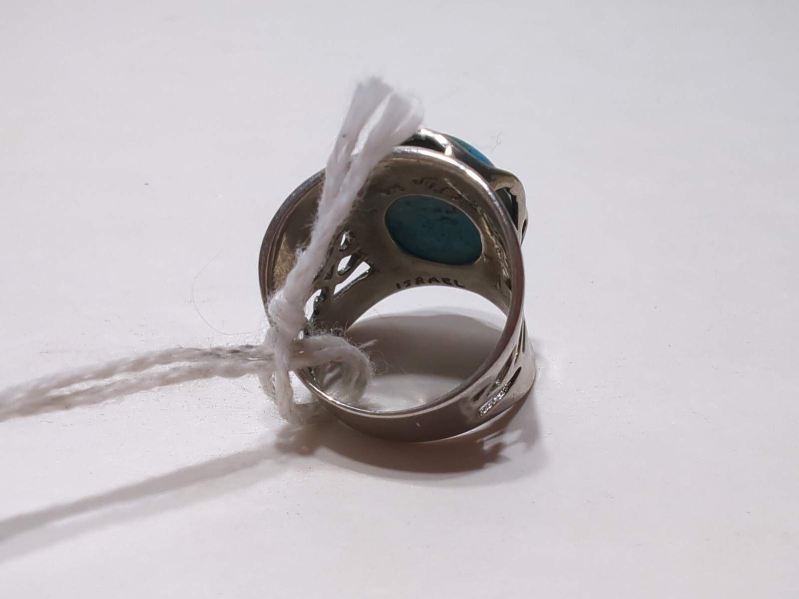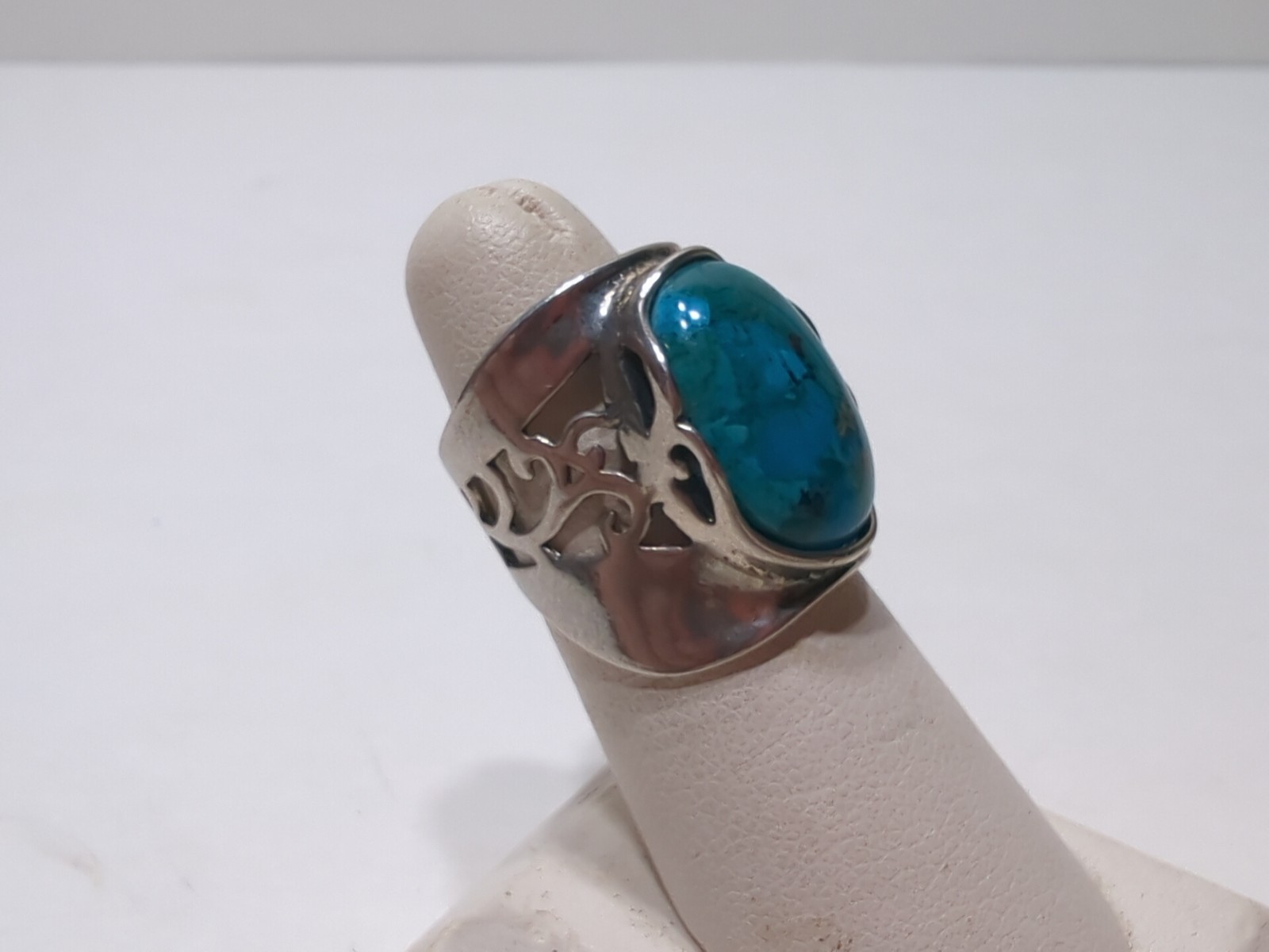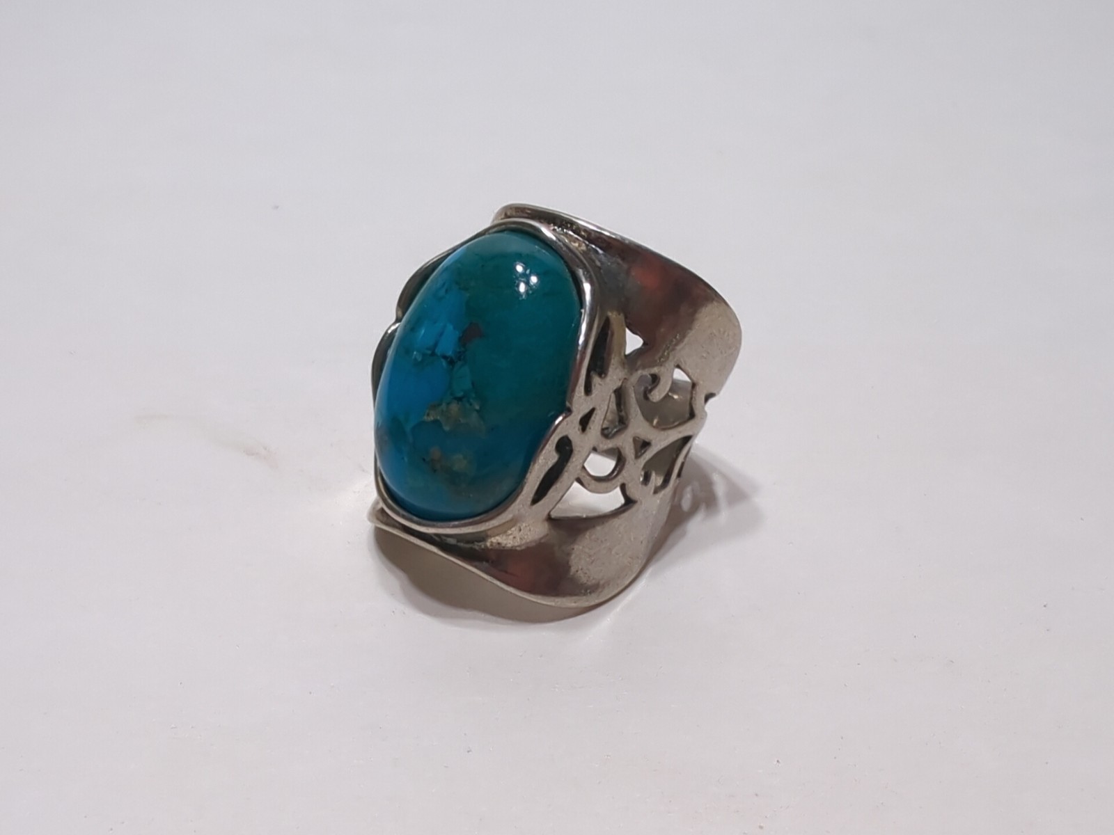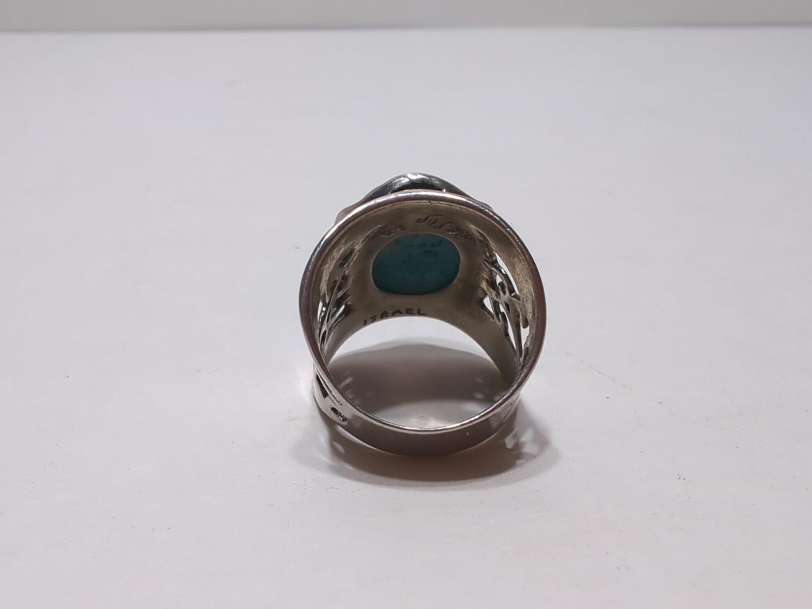 как выглядит VINTAGE Turquoise And Sterling Silver RING Sz 6 Ornate Big Oval Stone - ISRAEL фото