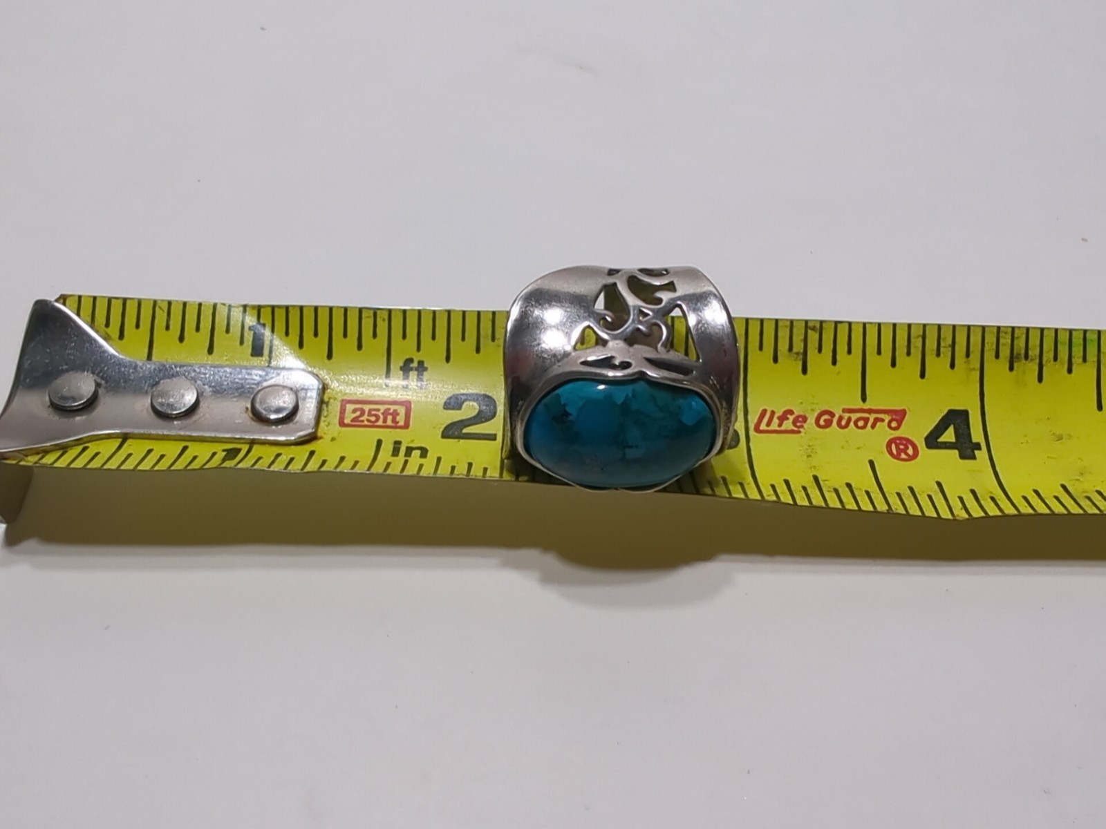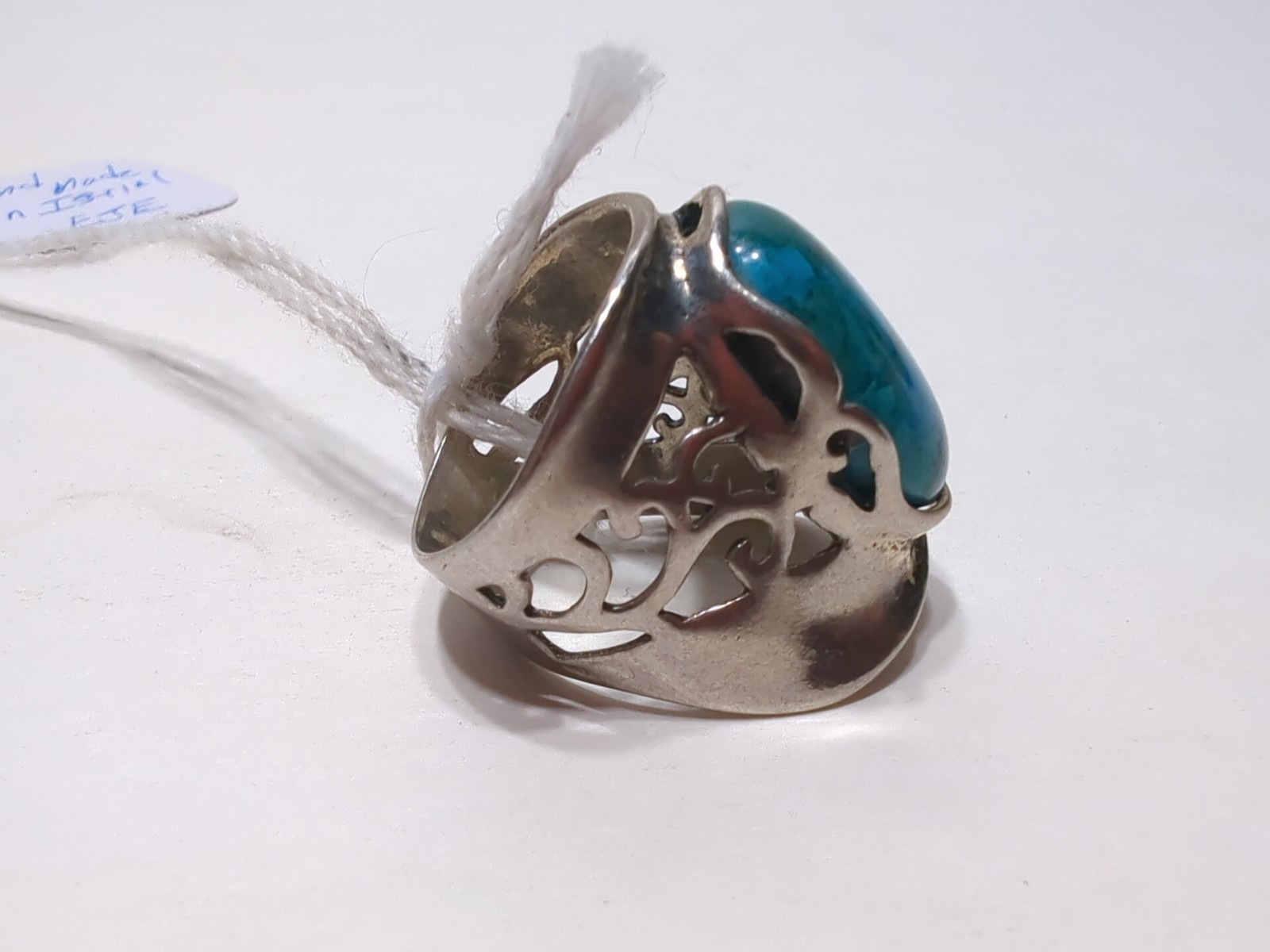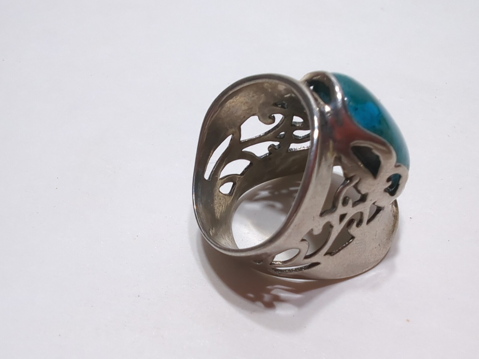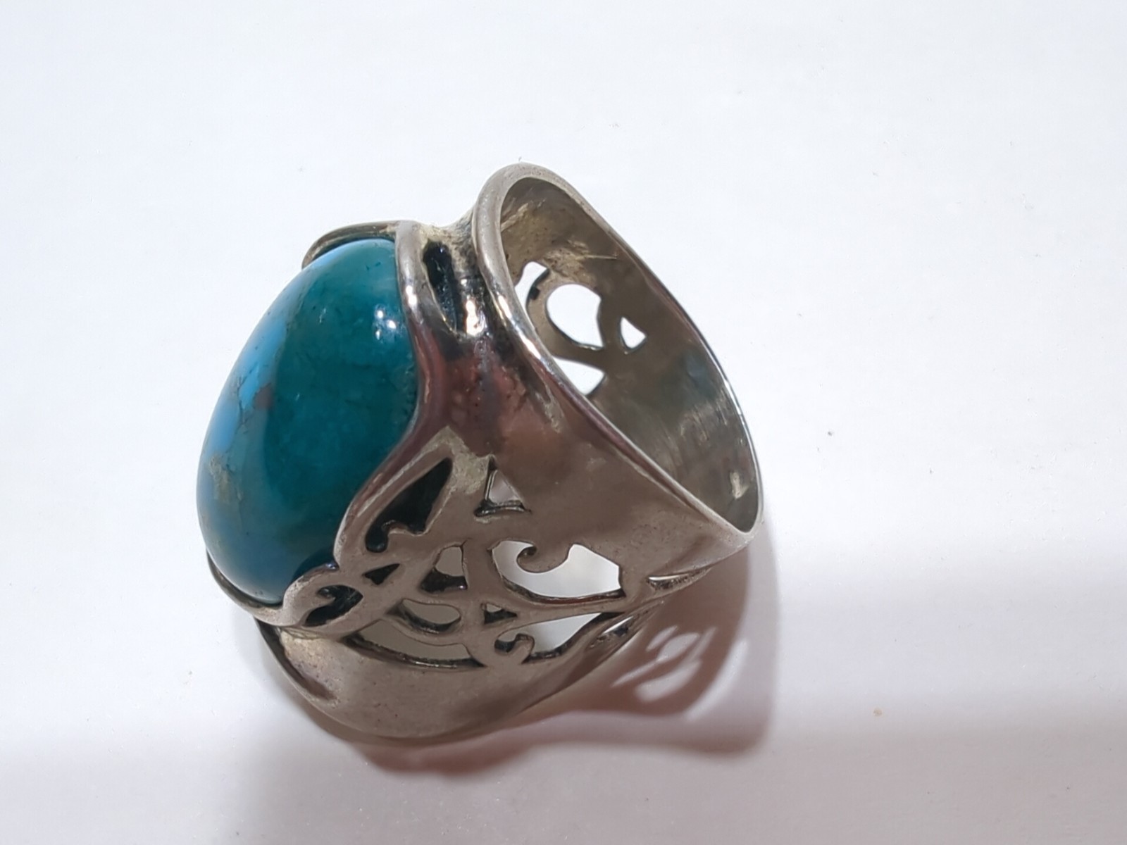 как выглядит VINTAGE Turquoise And Sterling Silver RING Sz 6 Ornate Big Oval Stone - ISRAEL фото