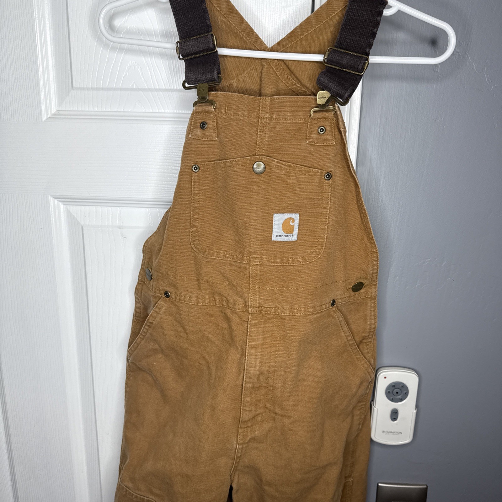 как выглядит Carhartt Overalls Youth Boys Size 8 Brown Double Knee Canvas Workwear фото