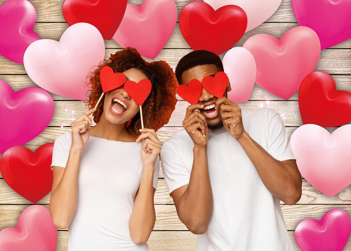 Valentine's Day Photography Backdrop 7x5FT Pink Heart Backdrop Wooden Glitter...