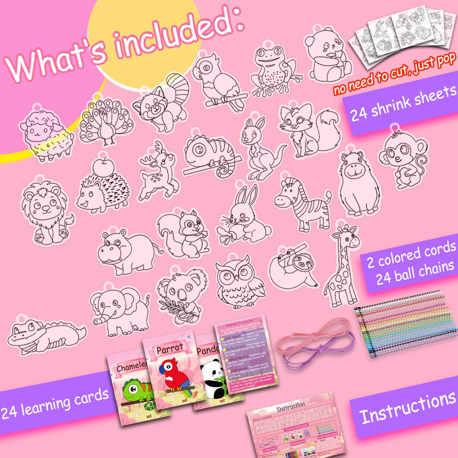 Shrink Fun 75PCS Shrinky Dinks Sheets Craft Kits for Kids, small, Pink forest