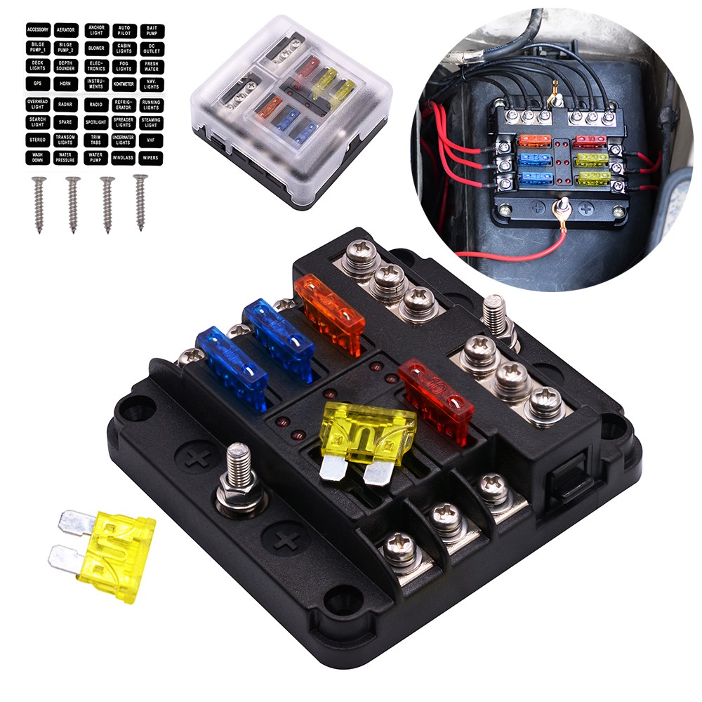 6-Way Blade Fuse Box Block Holder LED Indicator 12V 24V Auto Marine Waterproof