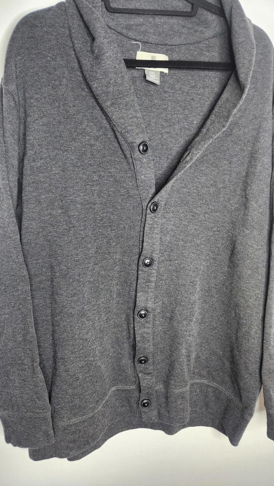 как выглядит Oak Hill Sweater Mens 1XL Gray Shawl Collar Button Front Cardigan 100 Cotton фото