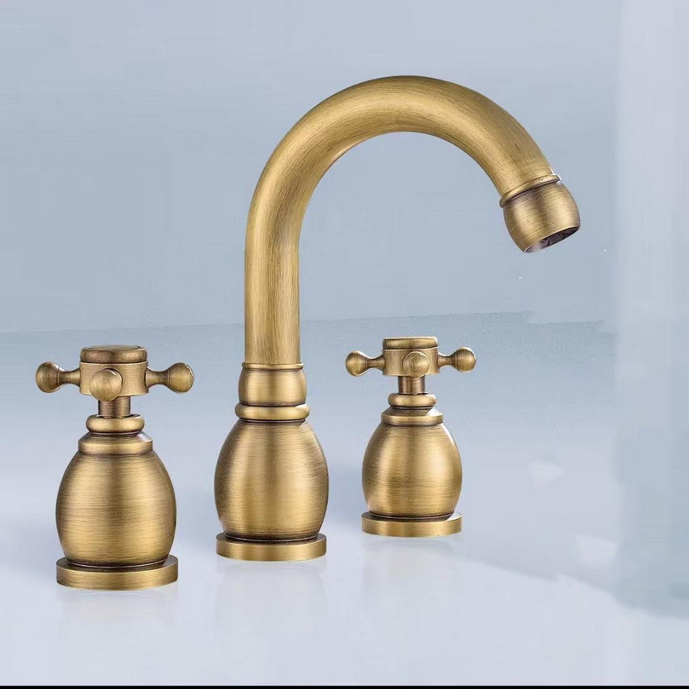 как выглядит Antique Brass Widespread Bathroom Swivel Spout Faucet 3 Hole Mixer Tap fnf993 фото