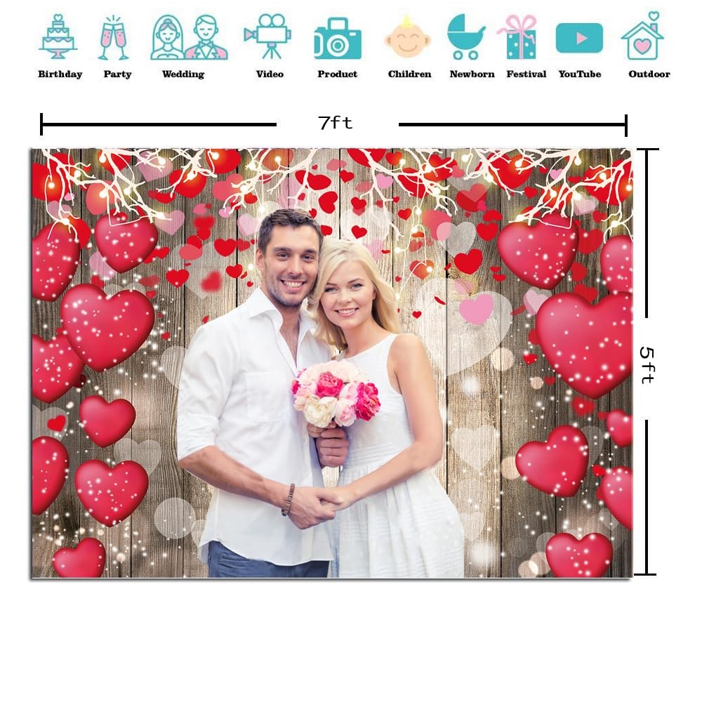 CYLYH 7x5ft Valentine's Day Backdrop Rustic Wood Red Love Heart 7x5ft, brown