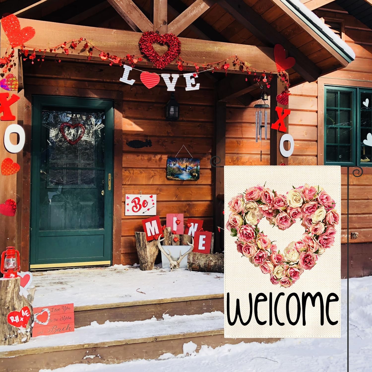 как выглядит Love Heart Rose Wreath Valentines Day Garden Flag 12x18 Inch Double Sided Outsid фото