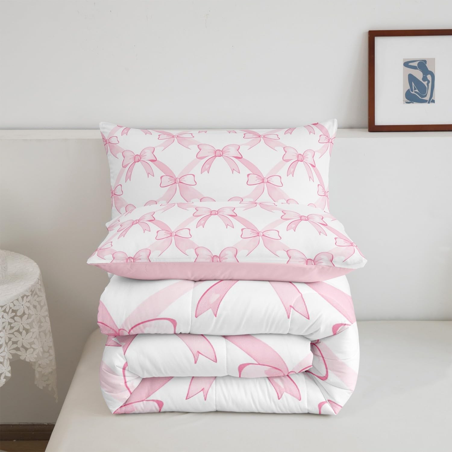 Kids Girls Pink Bowknot Comforter Set,Dreamy Princess Bow Bedding Set King Si...