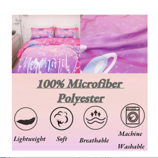 как выглядит URBONUR 3 Pcs Mermaid Tail Girls Full Size Comforter Set, Glitter Fish Scale Com фото
