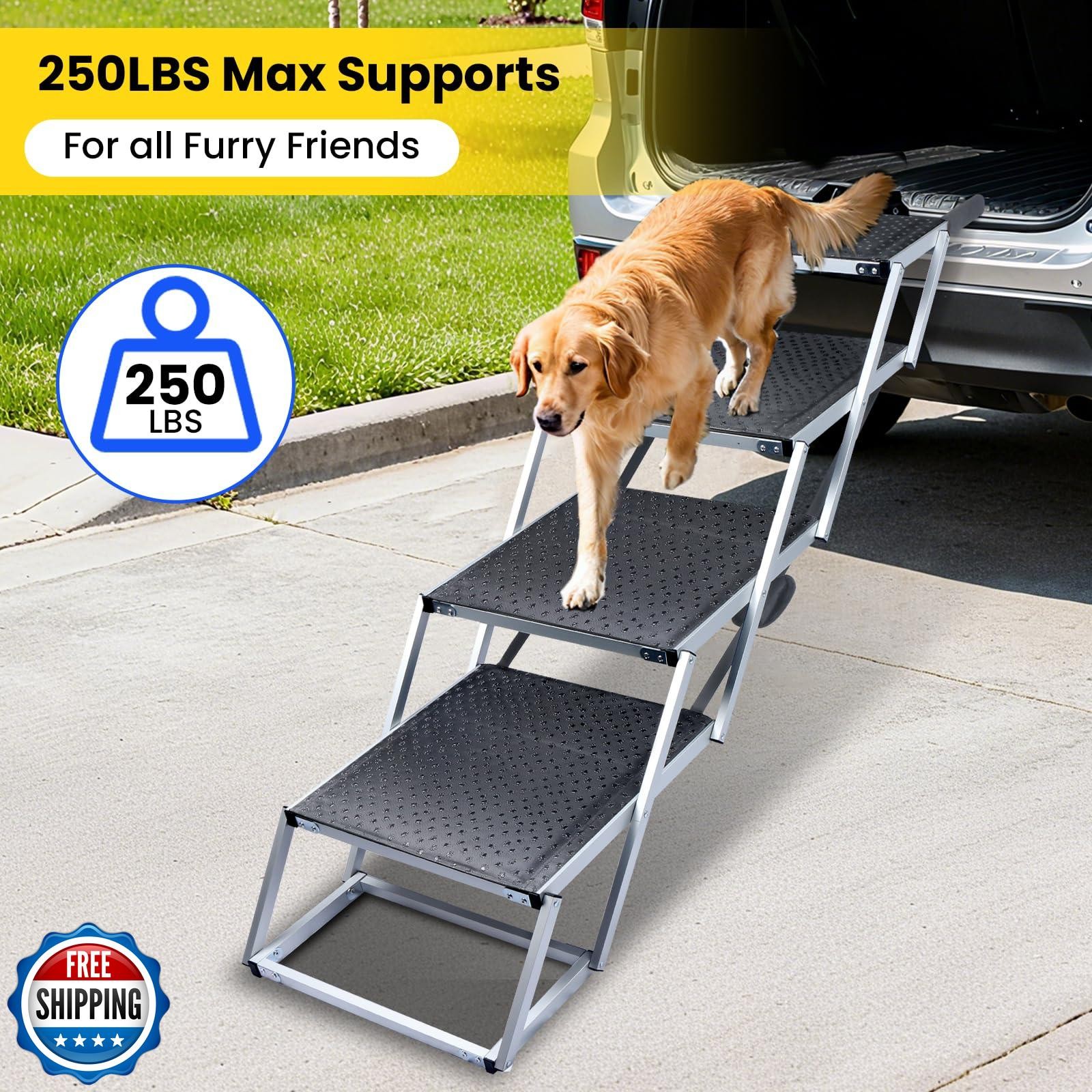 Extra Wide Dog Stairs for Large Dogs, Portable Dog Ramp for Car w