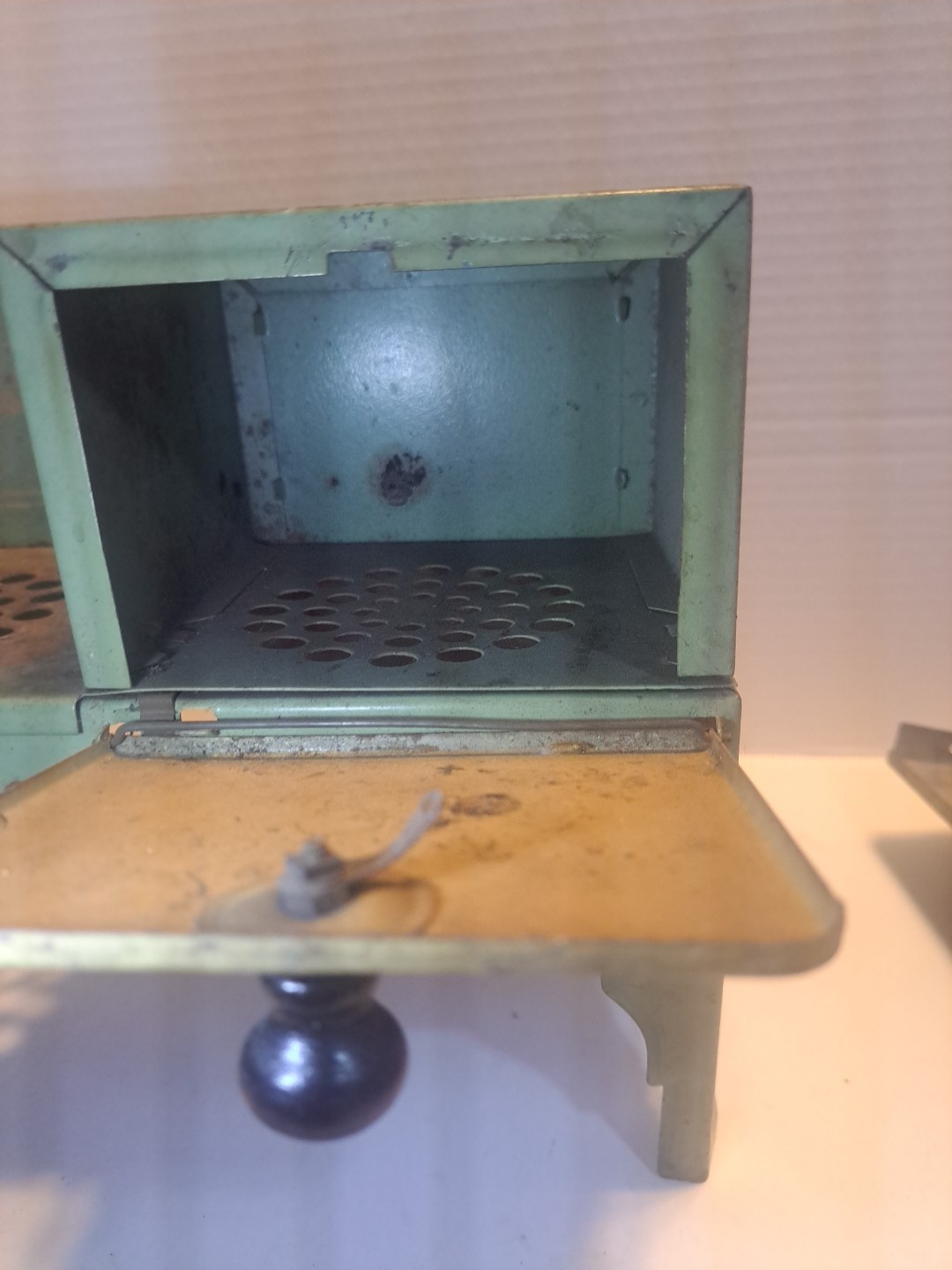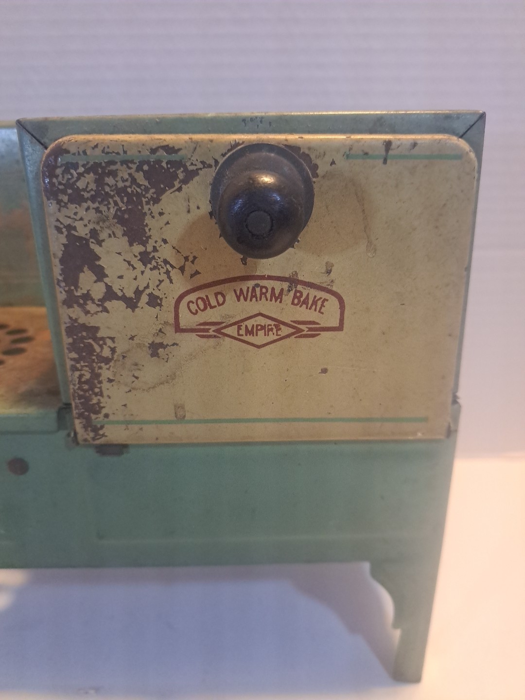 как выглядит 1930s Empire Metal Ware Toy Stove Sage Green And Rust фото