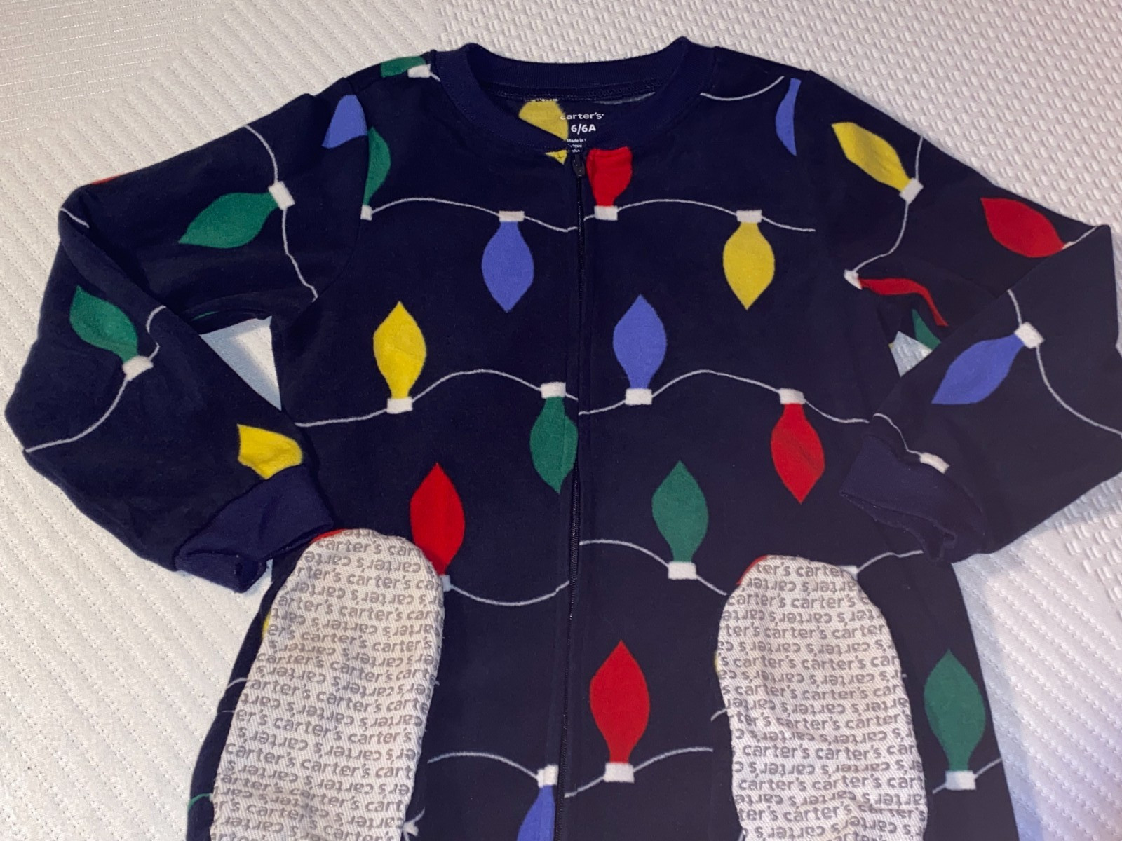 N5 WOW Carter's Boys Size 6 Christmas Lights Fleece Footed Blanket Sleeper