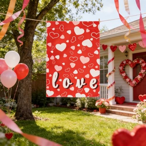 • Love Heart Valentines Day Garden Flag 12x18 Inch Double Sided Yard Garden Flag..