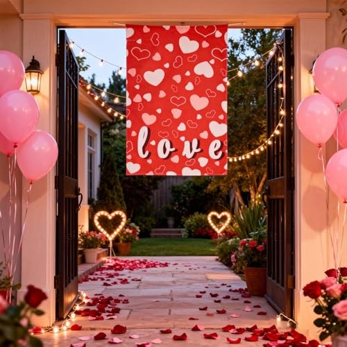 Love Heart Valentines Day Garden Flag 12x18 Inch Double Sided Yard Garden Flag..