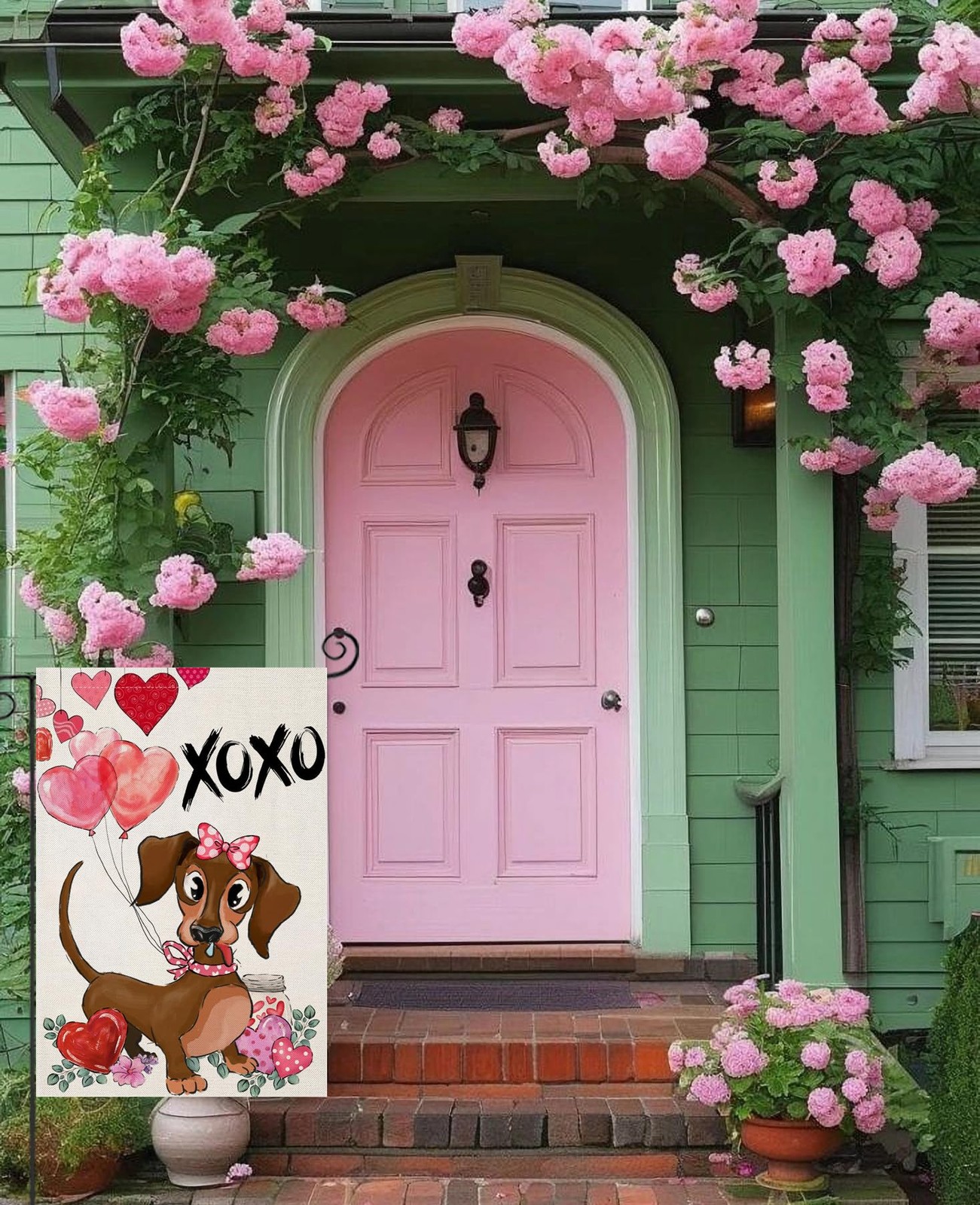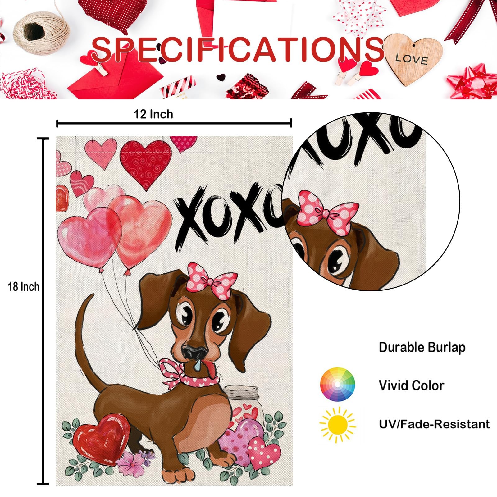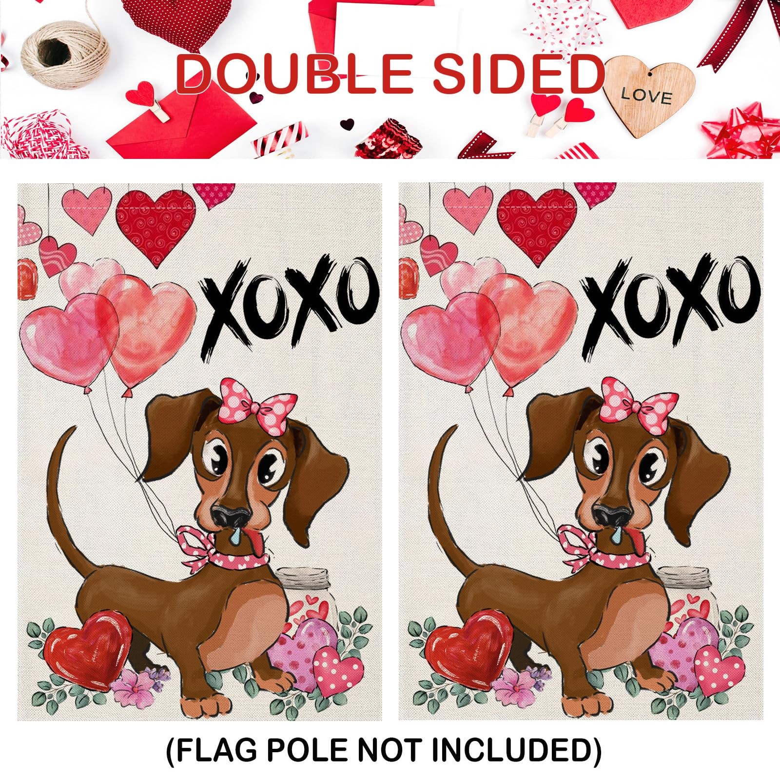 • Valentines Day Garden Flags for Outside, Dachshund Dog with Balloons Small Seaso