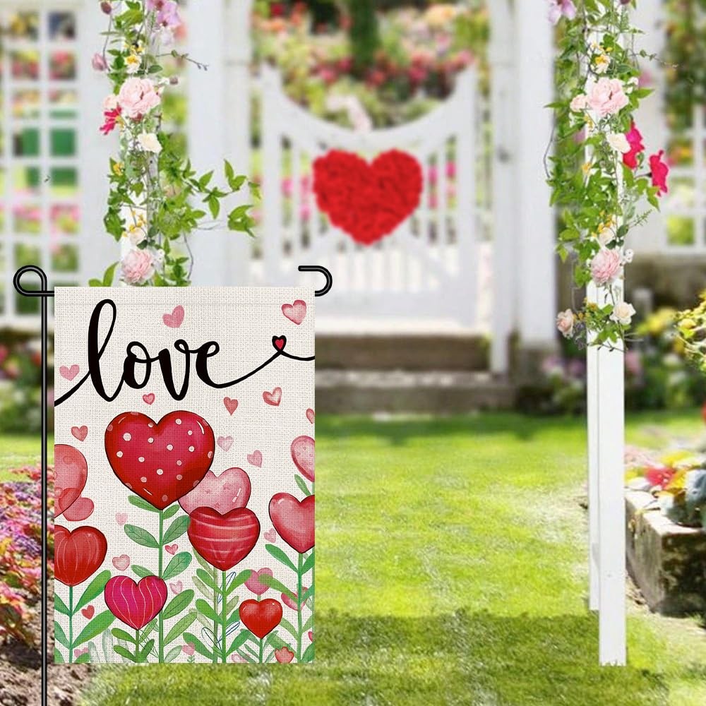 • Valentines Day Garden Flags for Outside12x18 Double Sided Burlap, Anniversary...