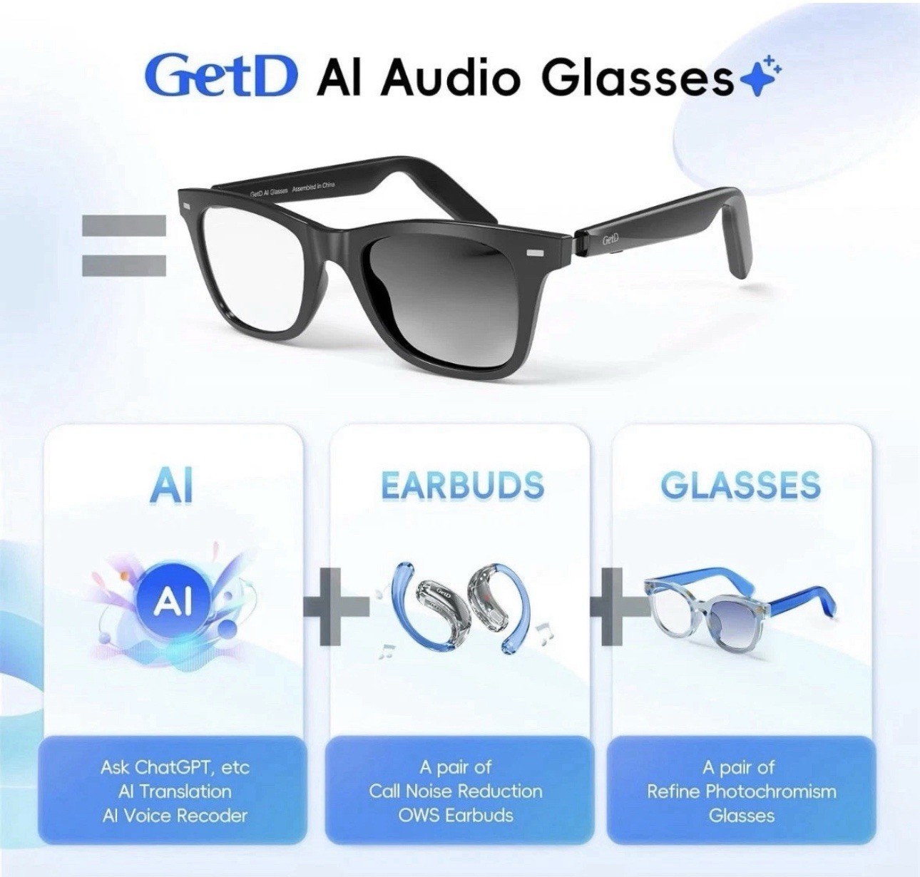 как выглядит GetD AI Glasses for Men Women, Smart Glasses Powered by ChatGPT, AI Real-time фото