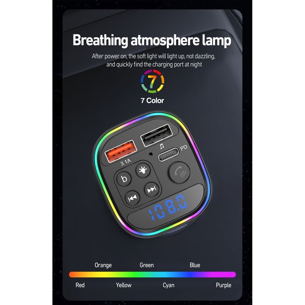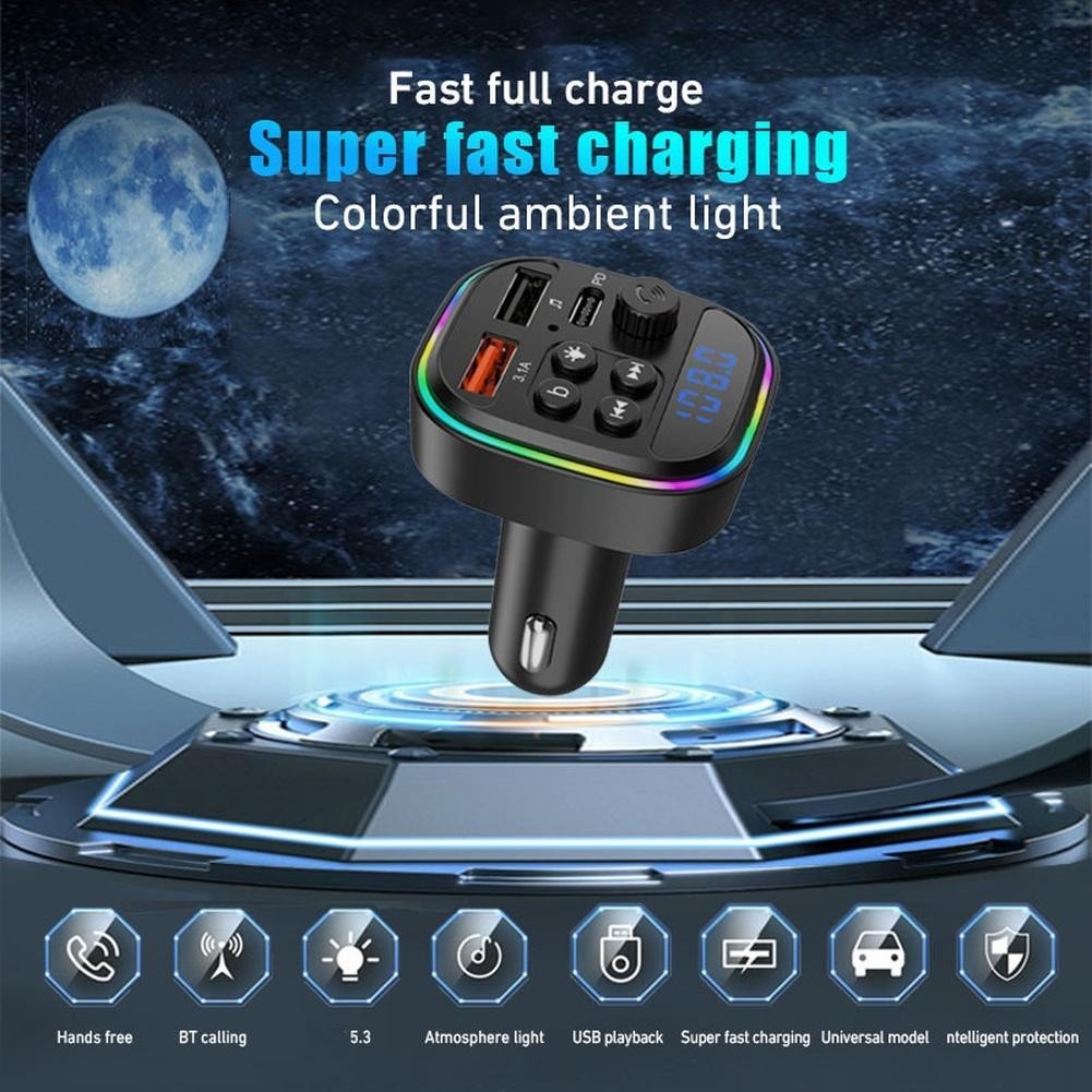 Car FM Transmitter with Wireless MP3 Player and Dual USB Fast Charging Ports