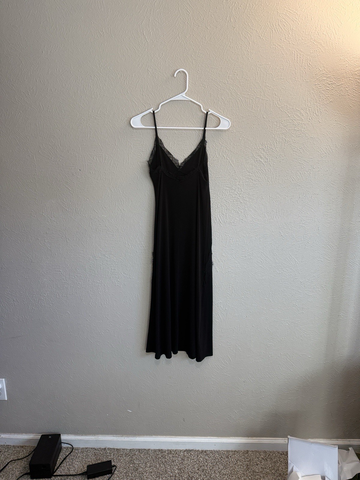 MNG Black Lace Trim Full Slip Dress Adjustable Strap Women's XS