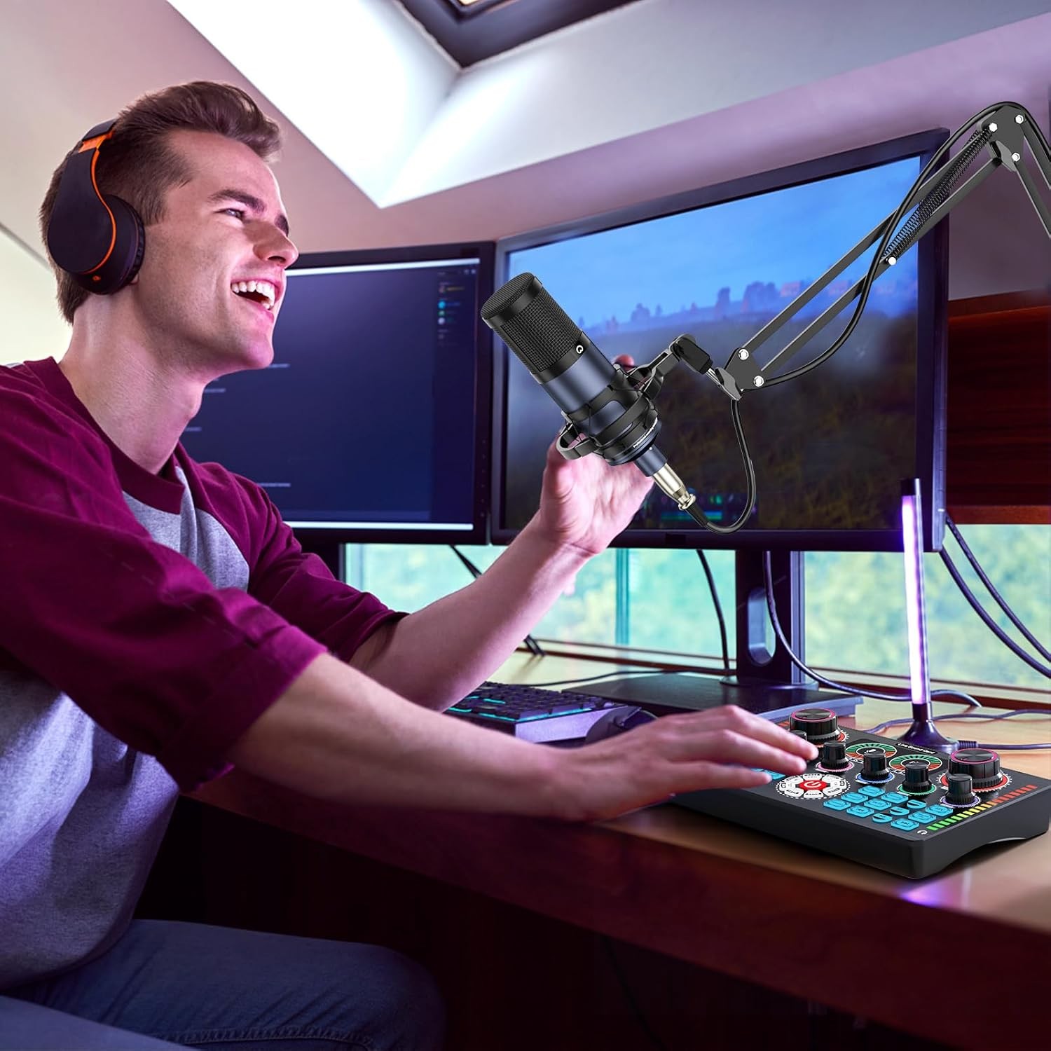 как выглядит Complete Studio Recording Kit Mixer 2 Condenser Microphone Set Music Podcast NEW фото